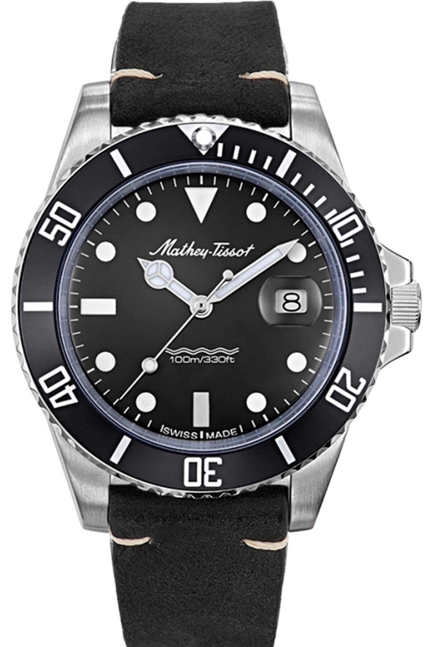 CASE: DIAMETER 42 mm CASE: THICKNESS 10 mm CASE: WATER RESISTANCE 10 ATM (100 meters, 330 feet) CASE: BACKPLATE Stainless Steel 316L CASE: GLASS Sapphire Coated BRACELET: CLASP Buckle DIAL: COLOR Black GENDER Men MOVEMENT: FUNCTION Date MOVEMENT: ORIGINE Swiss Made MOUVEMENT: TYPE Quartz COLLECTION Mathy Vintage Quartz