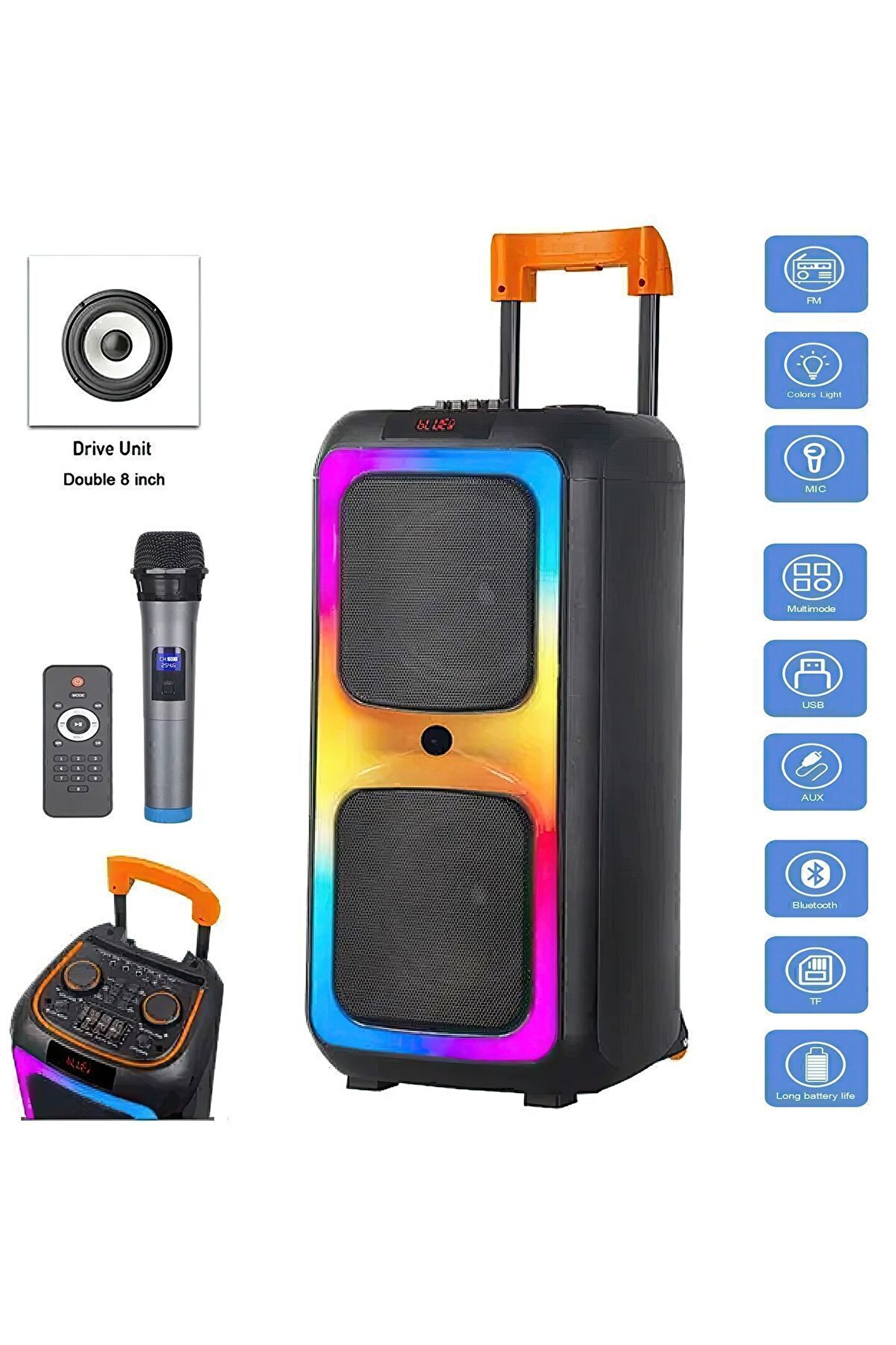 TMAX Siyah Ultra Güçlü Kaliteli Profosyonel Bt Hoparlör-(TAŞINABİLİR ANTASTİK RENKLİ IŞIKLI)