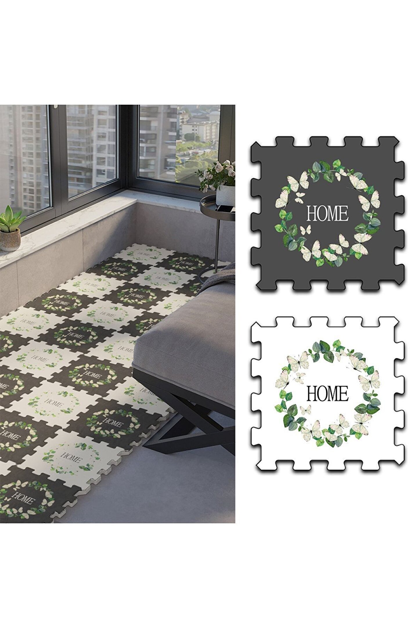 Dekoratif Cam Balkon Yer Halısı Thb4 | Yapboz Halı | Puzzle Halı