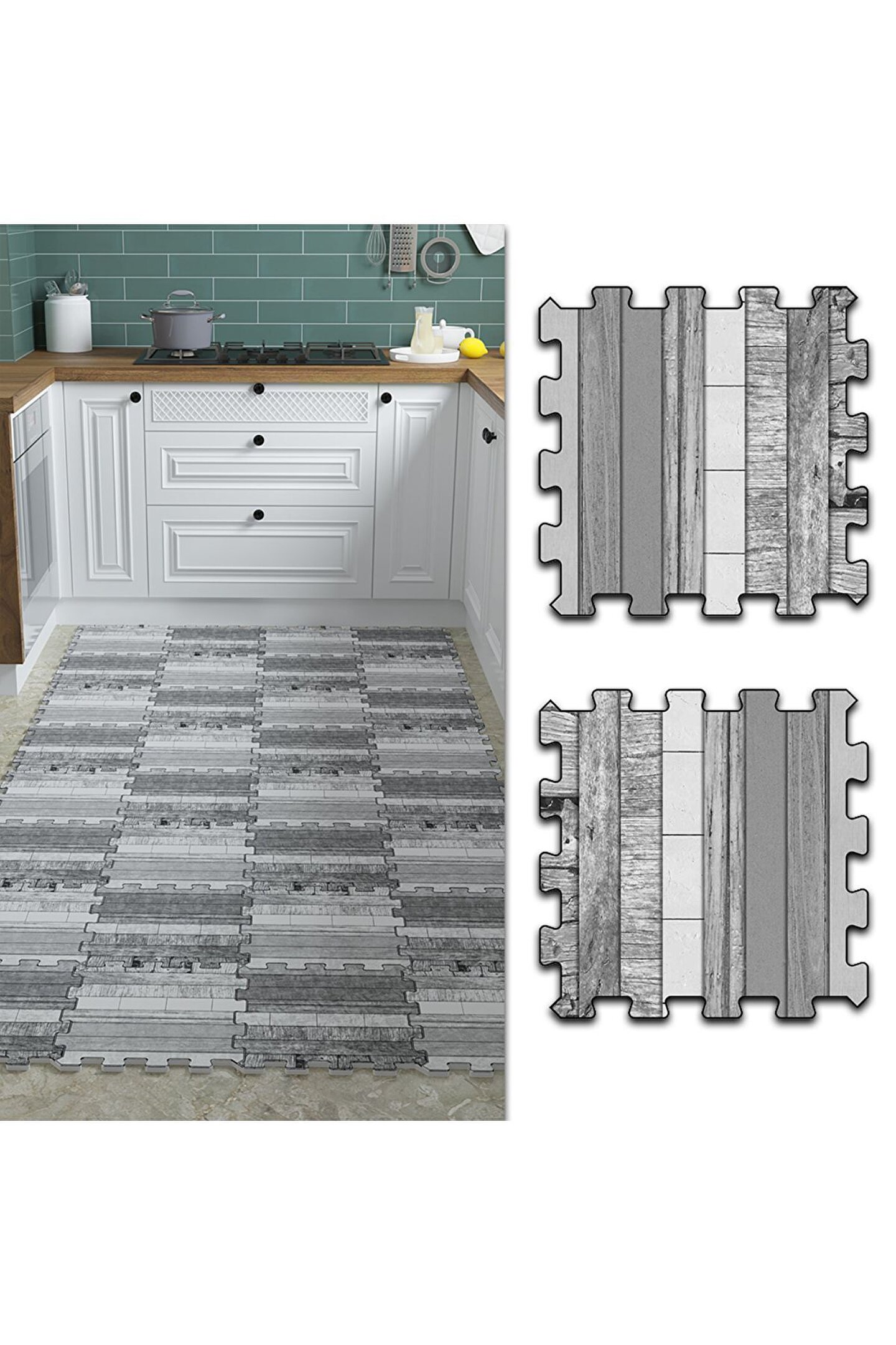 Desenli Yıkanabilir Mutfak Halısı Thm18c | Yapboz Halı | Puzzle Halı