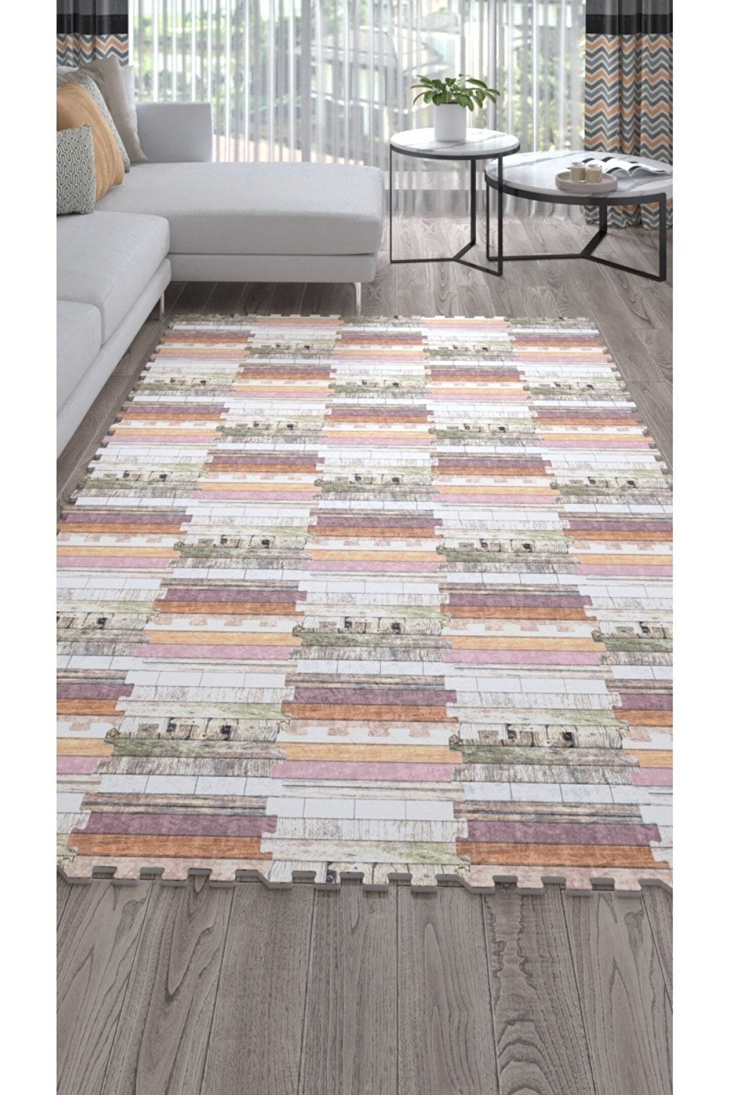 Tokyo Halı Döşeme Desenli Renkli Salon Halısı Ths18a | Yapboz Halı | Puzzle Halı