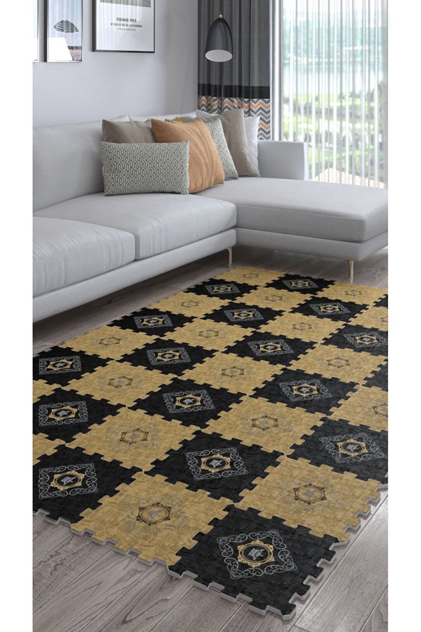 Tokyo Halı Kahverengi Siyah Dekoratif Salon Halısı Ths25 | Yapboz Halı | Puzzle Halı