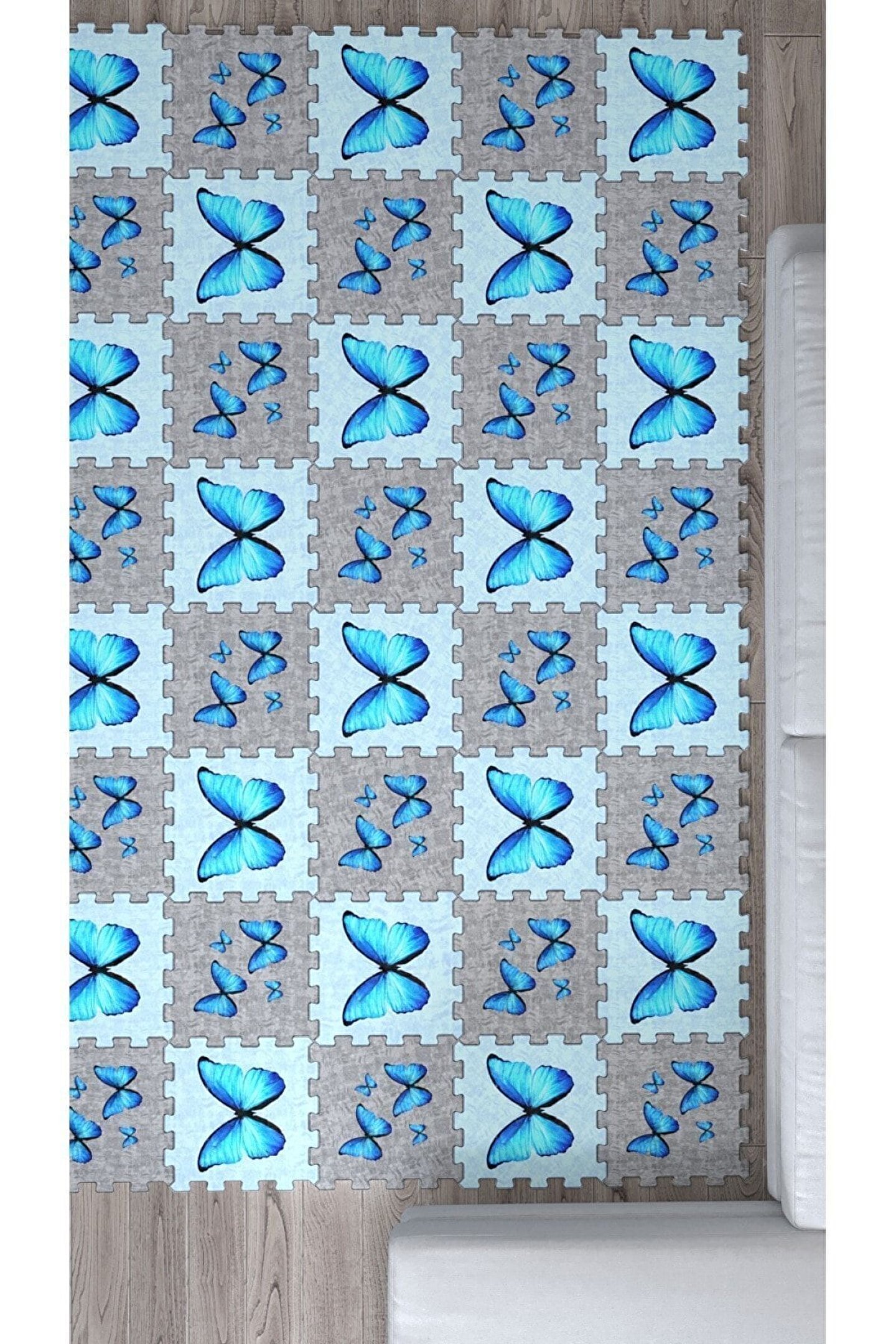 Tokyo Halı Kelebek Desenli Dekoratif Salon Halısı Ths26 | Yapboz Halı | Puzzle Halı