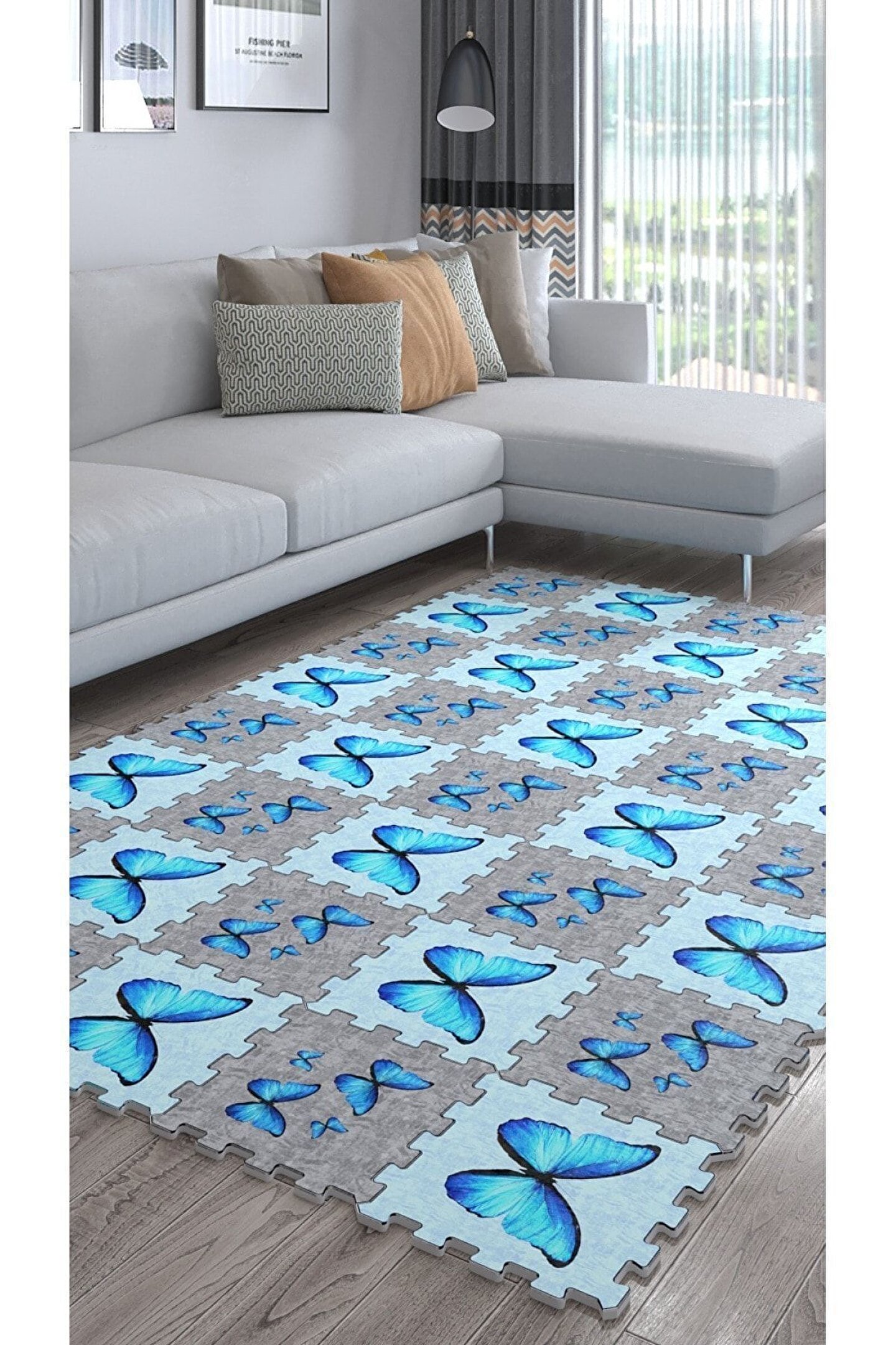 Tokyo Halı Kelebek Desenli Dekoratif Salon Halısı Ths26 | Yapboz Halı | Puzzle Halı