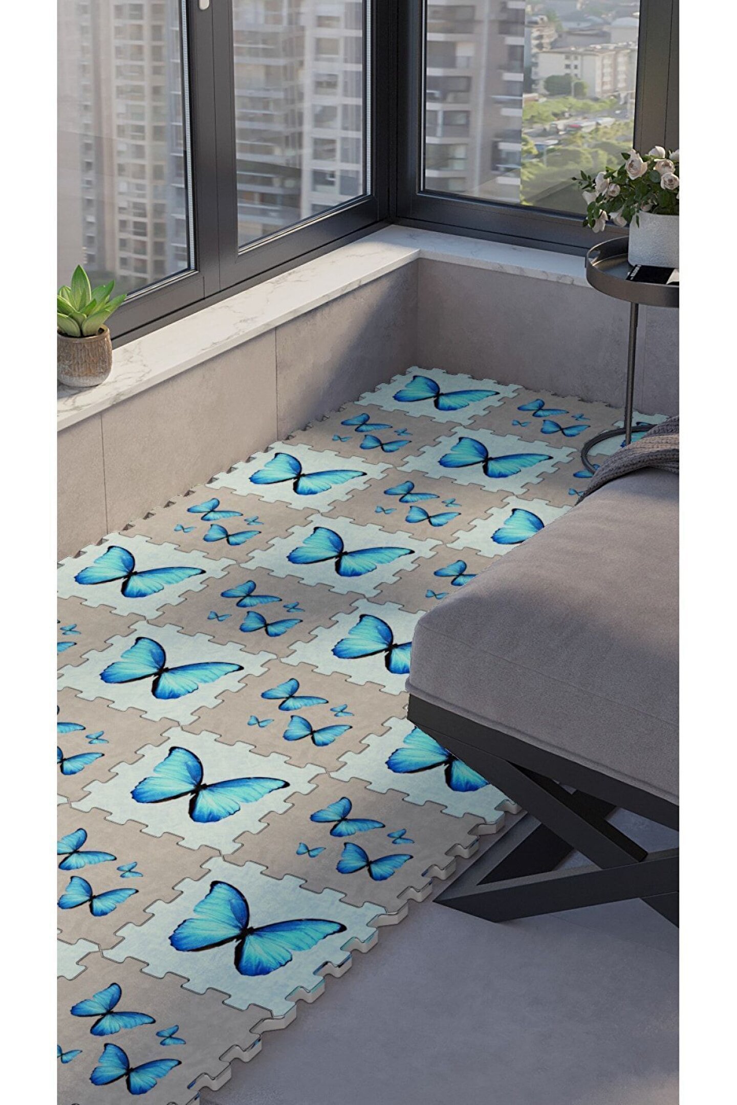 Tokyo Halı Kelebek Desenli Yumuşak Balkon Halısı Modelleri | Yapboz Halı | Puzzle Halı