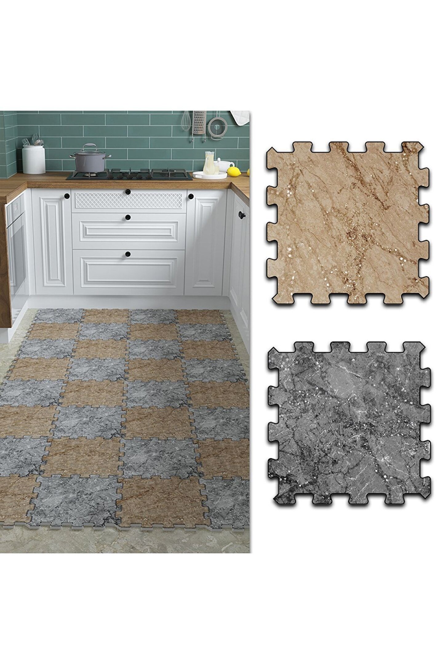 Tokyo Halı Makinede Yıkanabilir Mermer Desenli Halı Thm21 | Yapboz Halı | Puzzle Halı