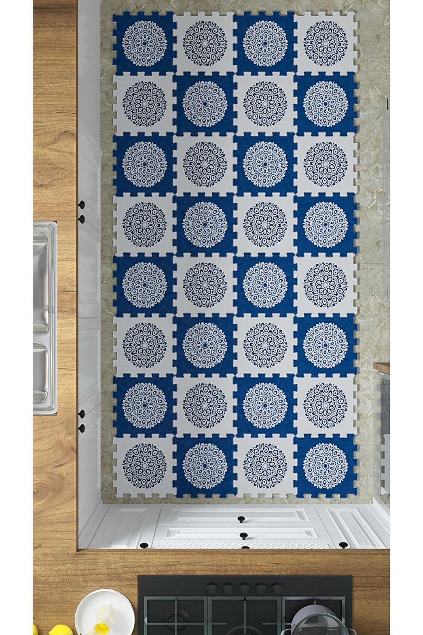 Tokyo Halı Mavi Beyaz Mutfak Halısı , Puzzle Halı, Yapboz Halı, Mavi Halı Thm11 | Yapboz Halı | Puzzle Halı
