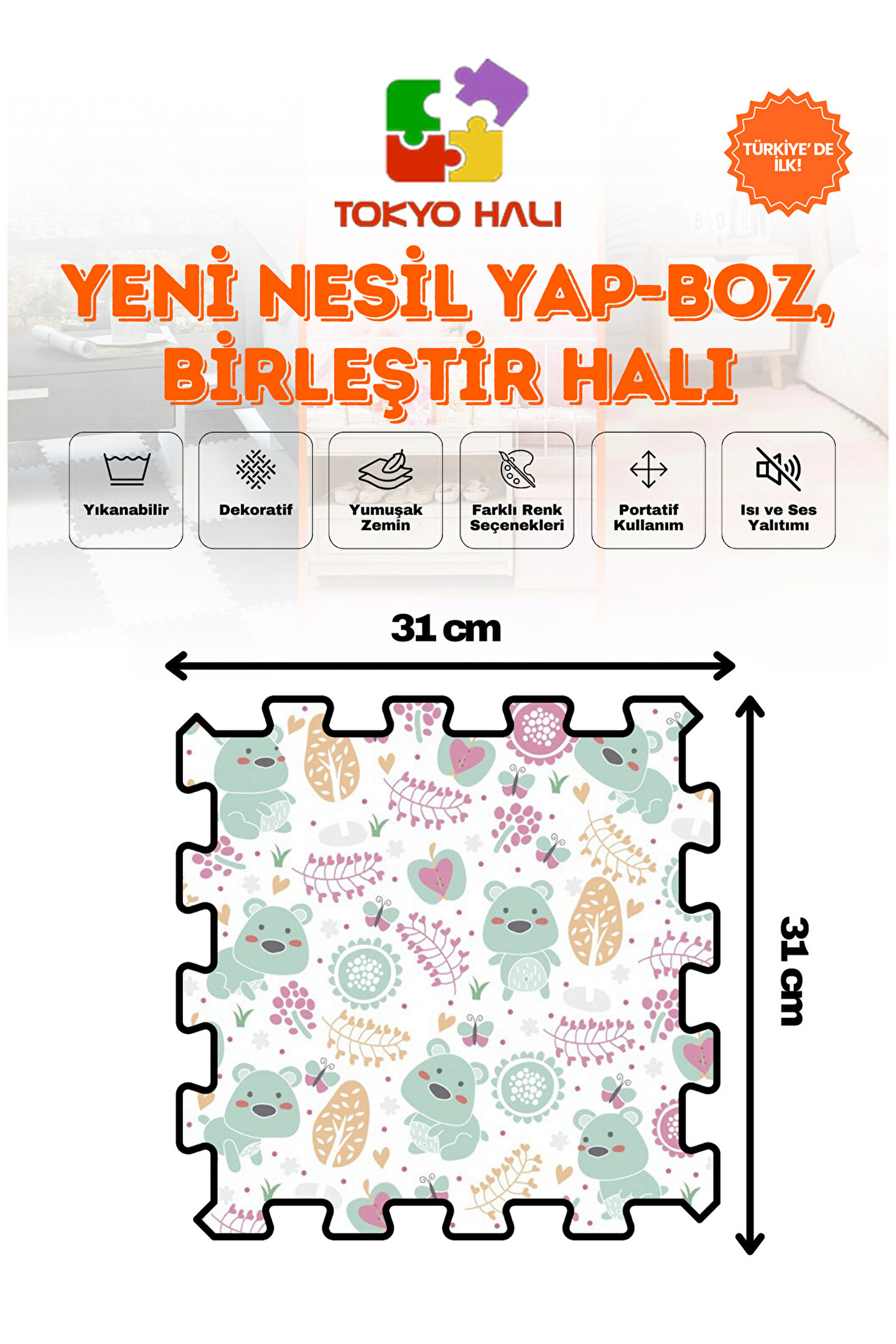 Tokyo Halı Puzzle Halı Kendi Tasarımını Oluştur Yapboz Halı Baskılı Halı