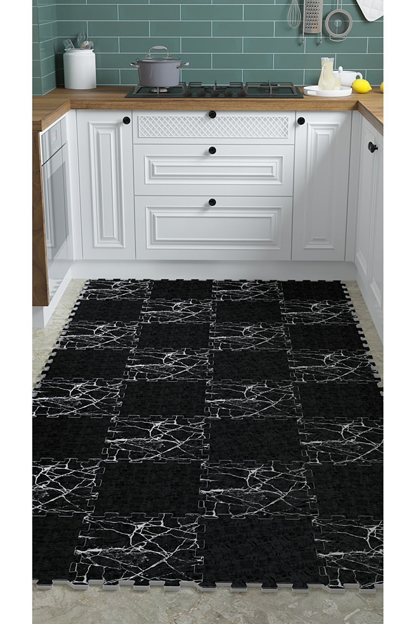 Tokyo Halı Siyah Su Geçirmez Mutfak Halısı Thm30 | Yapboz Halı | Puzzle Halı