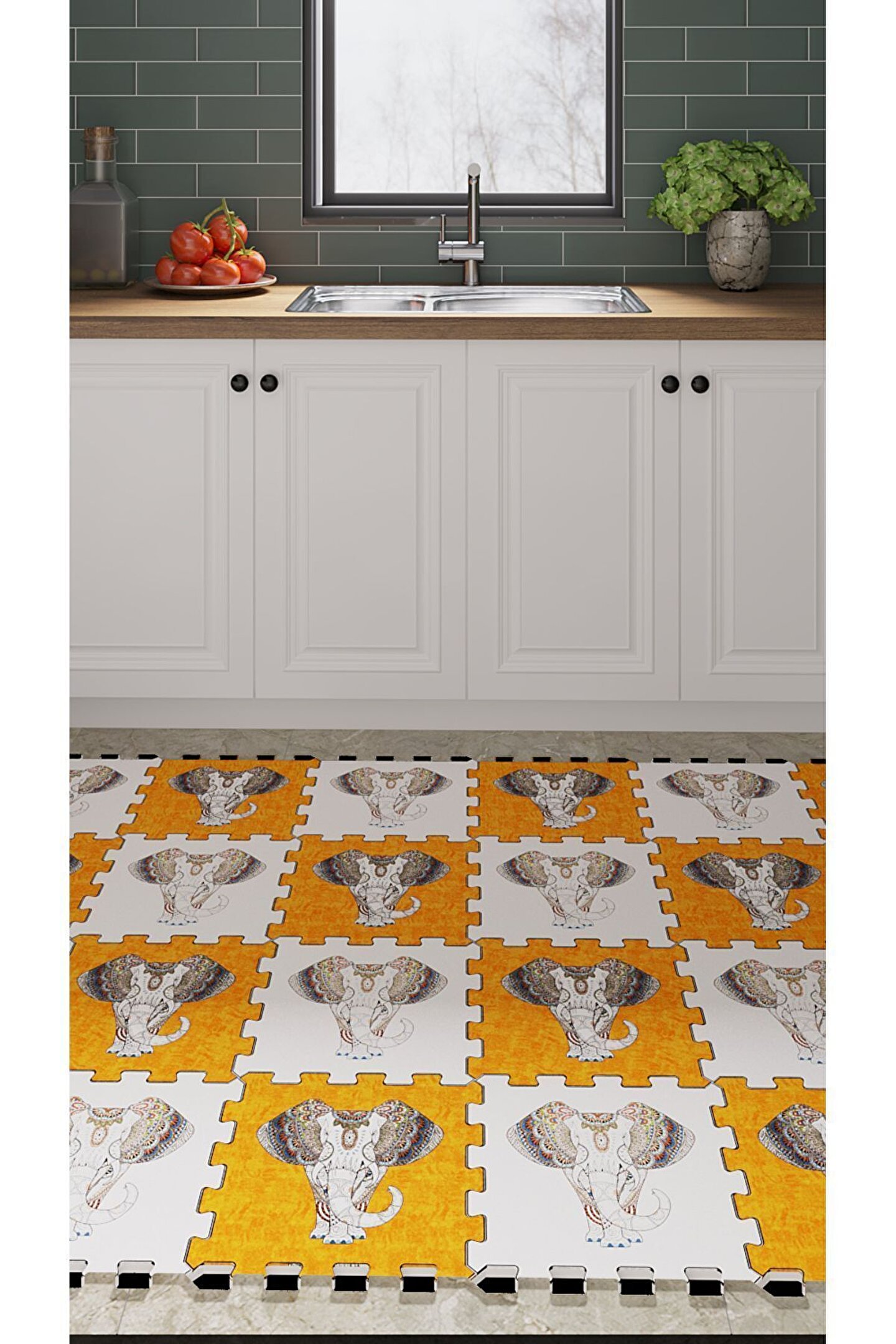 Tokyo Halı Turuncu Filli Yıkanabilir Mutfak Halısı Thm23 | Yapboz Halı | Puzzle Halı