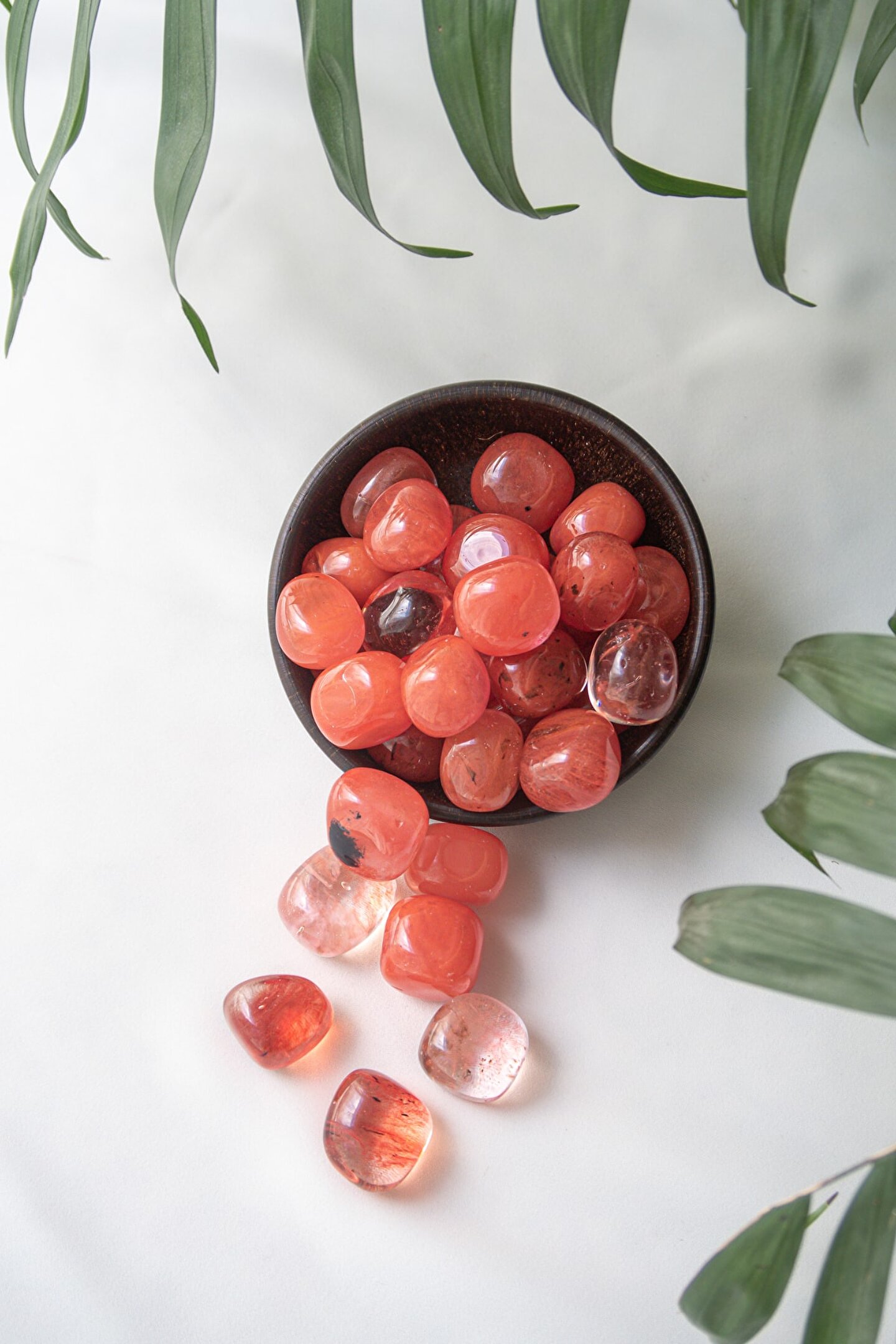 Doğal çilek kuvars taşının benzersiz dokusu ve renkleriyle ev ve ofis dekorasyonunuza doğanın güzelliklerini taşıyın; Tamburlanmış tımbıl taş, her bir yüzeyinde farklı desenler ve renk tonları barındırarak göz alıcı bir estetik sunar; Doğal taşların sıcaklığını ve zarafetini yaşam alanlarınıza taşıyarak, mekanınıza huzurlu ve dingin bir atmosfer katar; Dekoratif obje olarak kullanabileceğiniz bu tımbıl taş, hem işlevsel hem de estetik bir dokunuş sağlar;