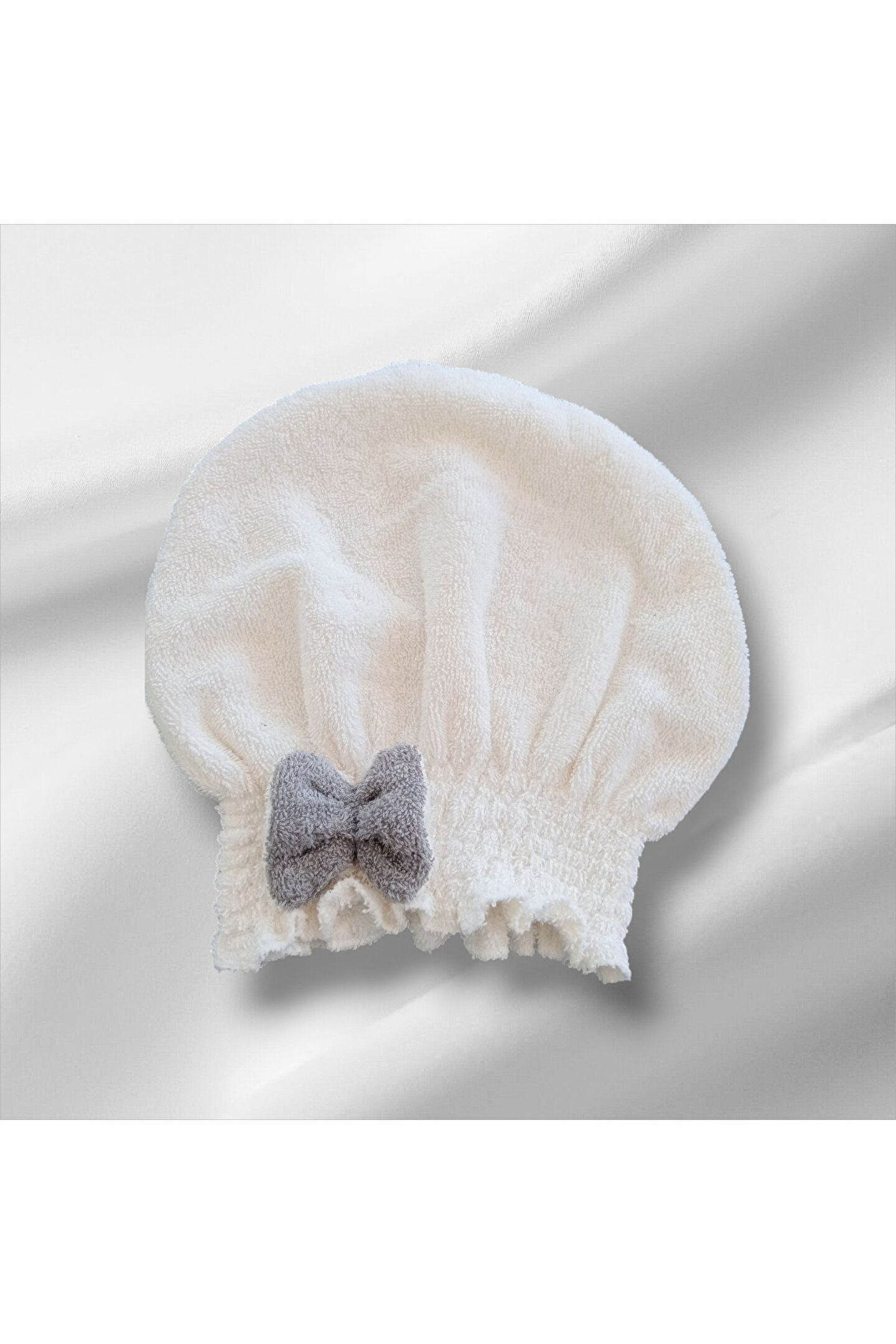 TOPRAK SPORT Saç Kurulama Banyo Duş Bonesi – %100 Pamuk , Fiyonklu Siyah