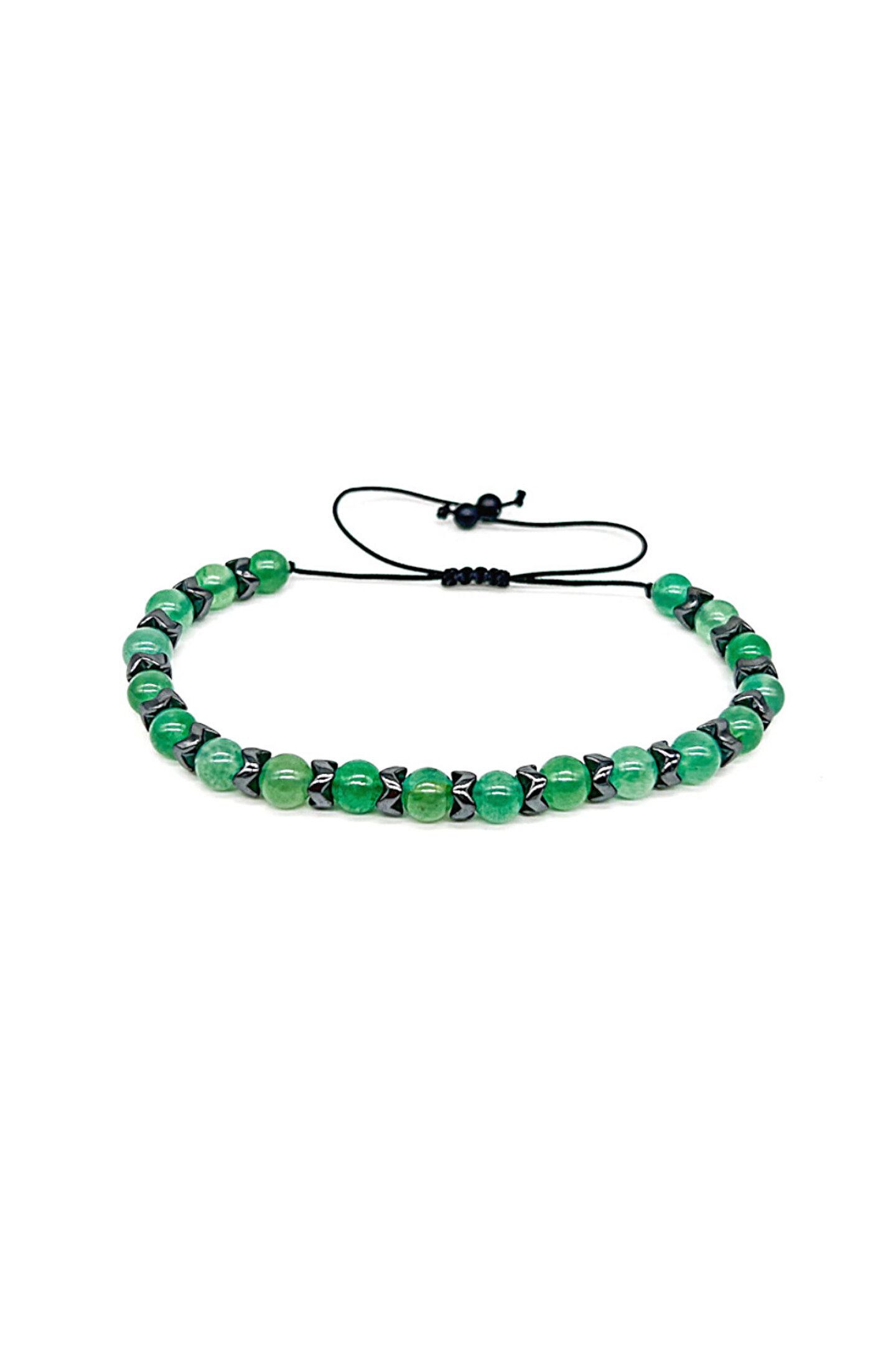 Doğal taş kullanımı sayesinde her bileklik benzersiz ve otantik bir görünüm sunar; Aventurin ve hematit gibi değerli taşların zarif kombinasyonu, şıklığınızı tamamlar; Doğal taş materyali ile hem dayanıklılık hem de estetik bir dokunuş sağlar; Bileklik, günlük kullanım için idealdir ve her türlü kıyafetle uyum sağlar;
