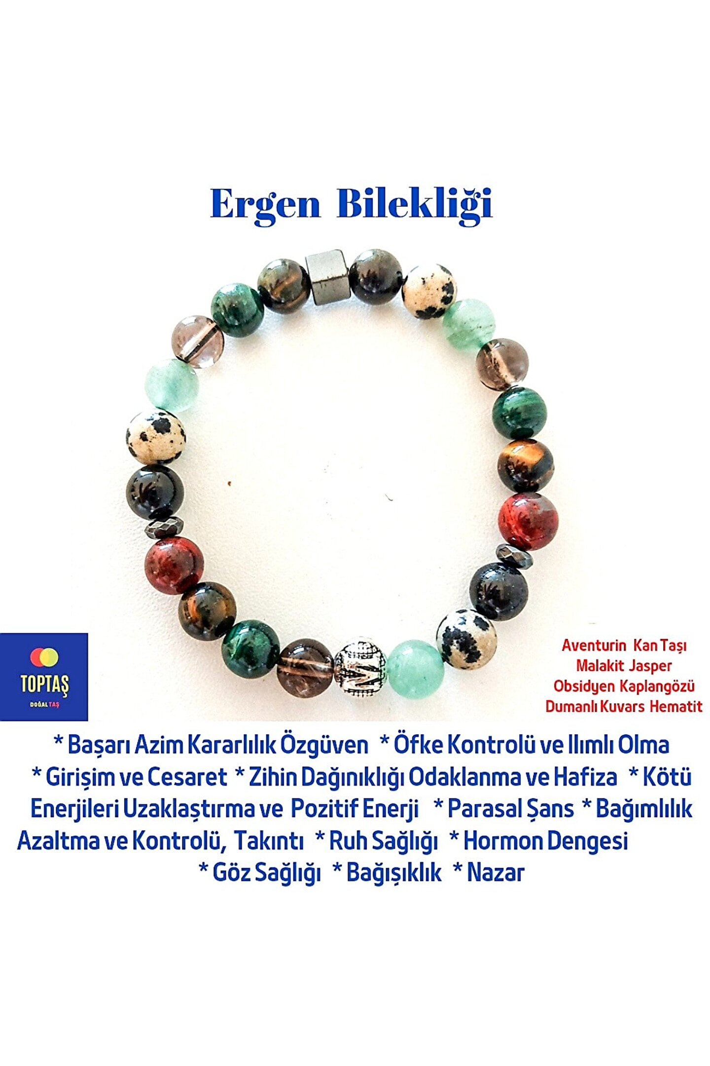Doğal taş kullanımı sayesinde her bileklik benzersiz ve özgün bir görünüm sunar; Gençlerin tarzını yansıtan bu bileklik, günlük kullanım için idealdir; Doğal taş materyali ile hem şıklığı hem de doğallığı bir arada sunar;
