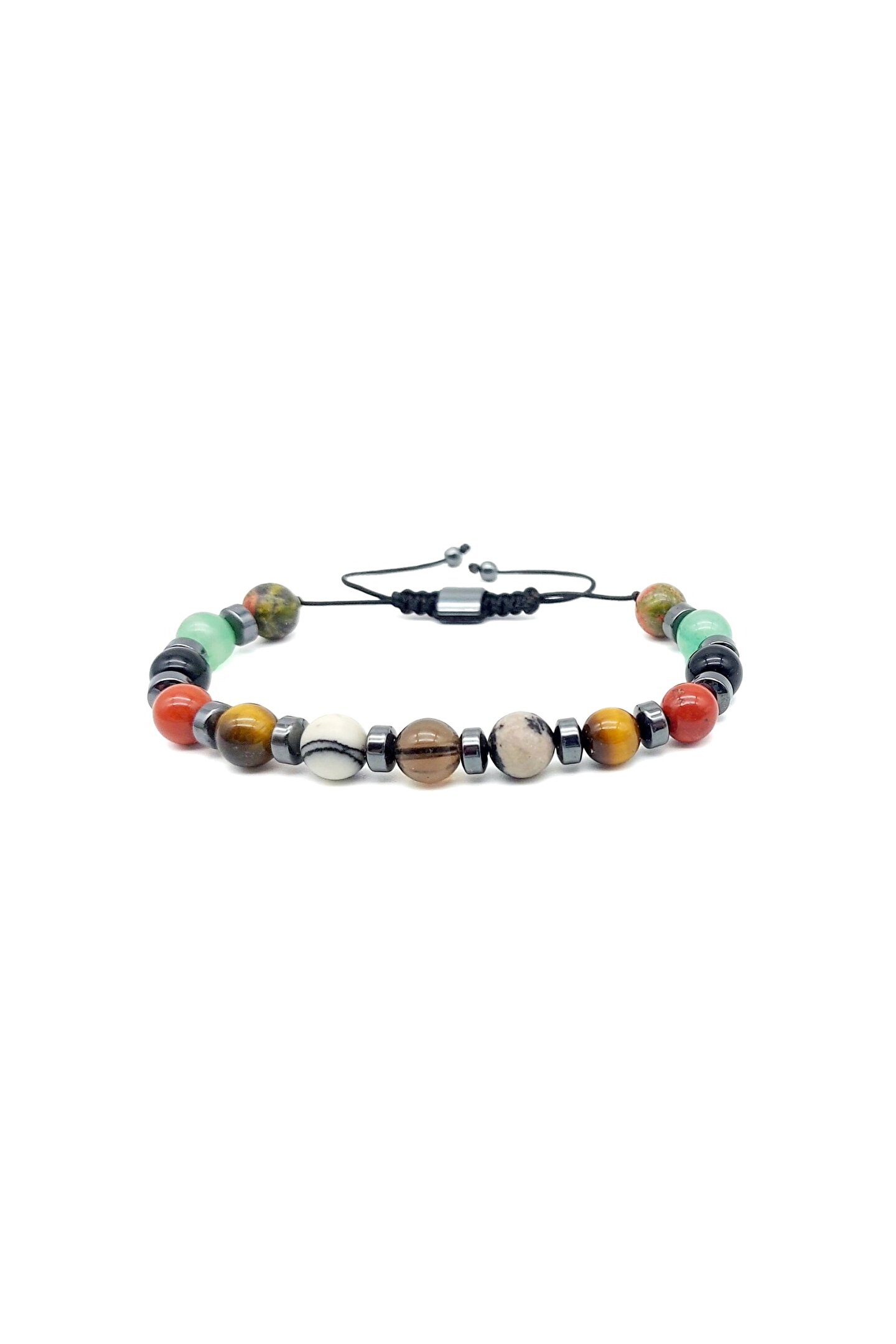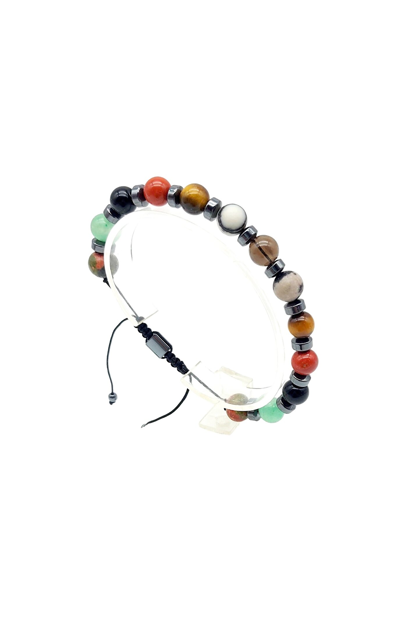 Erkek Güç ve Üreme Bilekliği ; Doğal Taşlar: Dumanlı Kuvars, Picasso Jasper, Kaplangözü, Oniks, Unakit, Kırmızı Jasper, Aventurin ve Hematit.; ; Orijinal ve gerçek doğal taşlar kullanılmıştır.; ; Bileklik, Asansörlü ve Ayarlanabilirdir.; Her Ölçüye Uygundur.; ; Dayanıklı Paraşüt İpinden İmal Edilmiştir.; ; Bilekliğin Özellikleri: Hormon Artışı, Kısırlık Azalma, Cinsel Güç ve İstek, Cesaret ve Enerji, Canlılık ve Neşe, Korku, Panik Atak, Kaygı ve Stres Baş Etme, İlişki Uyumu, Sevgi, İnanç, Cinsel Mutluluk ve Odaklanma ve Nazar, Eklem Omurga ve Ağrıları, Kas Krampları, Saç Dökülmesi.; ; Erkek Güç ve Üreme Bilekliği Kullanım şekli ; Tene temas etmelidir.; ; İçme suyu olan bir kapta 30 dakika veya kuru toprakta 1 saat bekletilir.; Kurulanıp kullanılır.; Temizleme işlemi 30 günde bir tekrarlanır.; ; Şampuan, sabun, deterjan gibi kimyasal maddeler ile temas ettirilmemesi gerekir.; Banyoda ve havuzda çıkarılması önemlidir.; ; Başka kişilerce ( kardeşler arasında ) kullanılması önerilmez.; ; Geceleri çıkarılıp baş ucunda tutulması önerilir.; ; Kullanım bilgisi ürün ile birlikte gönderilmektedir.