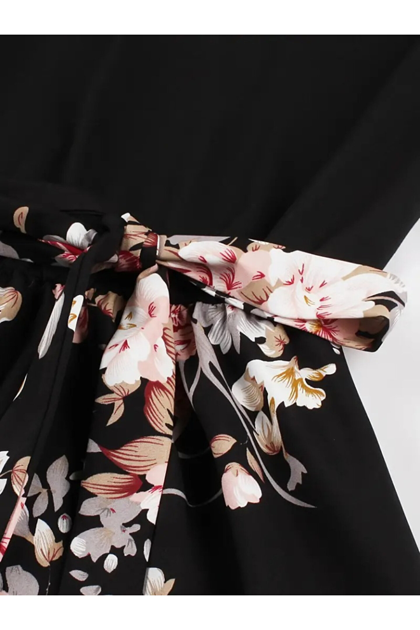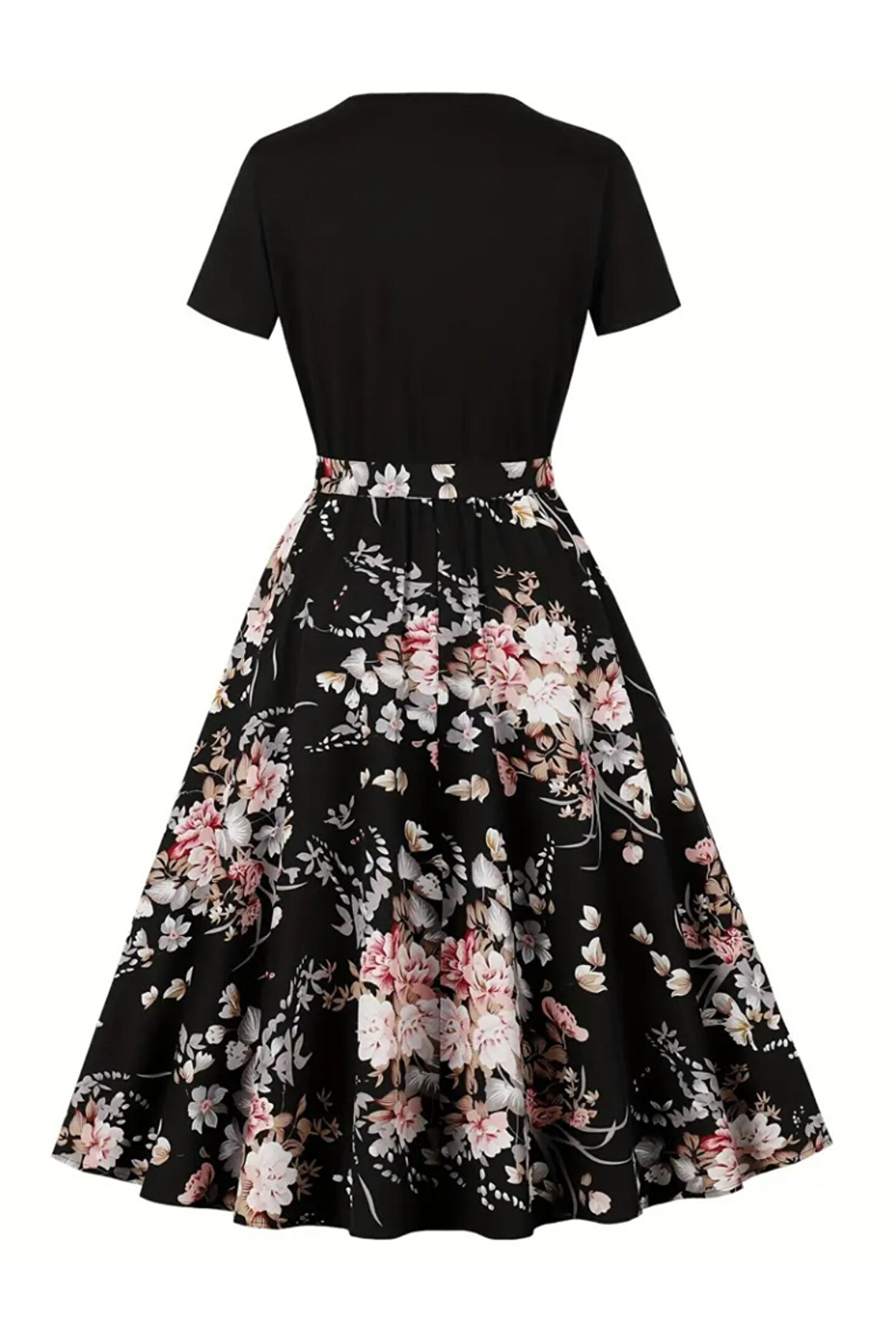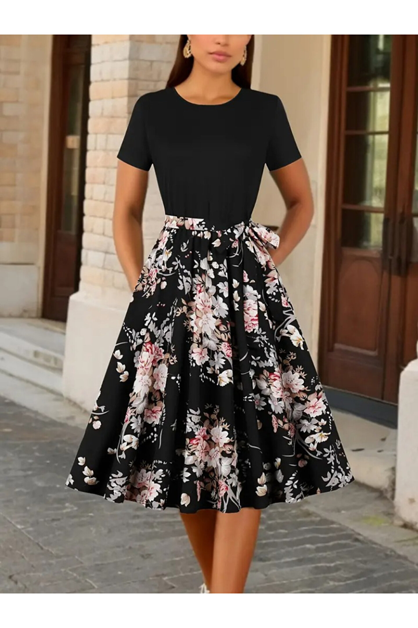 Kadın Kısa Kollu Bisiklet Yaka çiçek Desenli üst Viskon Alt Süprem Kısa Elbise