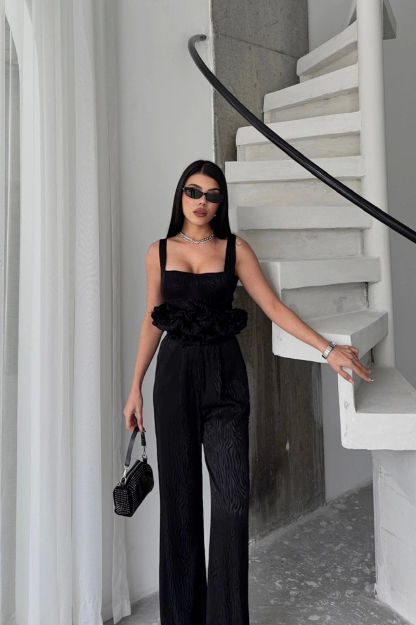 JAKARLI BLUZU TASARIM DETAYLI CEKET-PANTOLON-BLUZ 3 LÜ TAKIM - Siyah