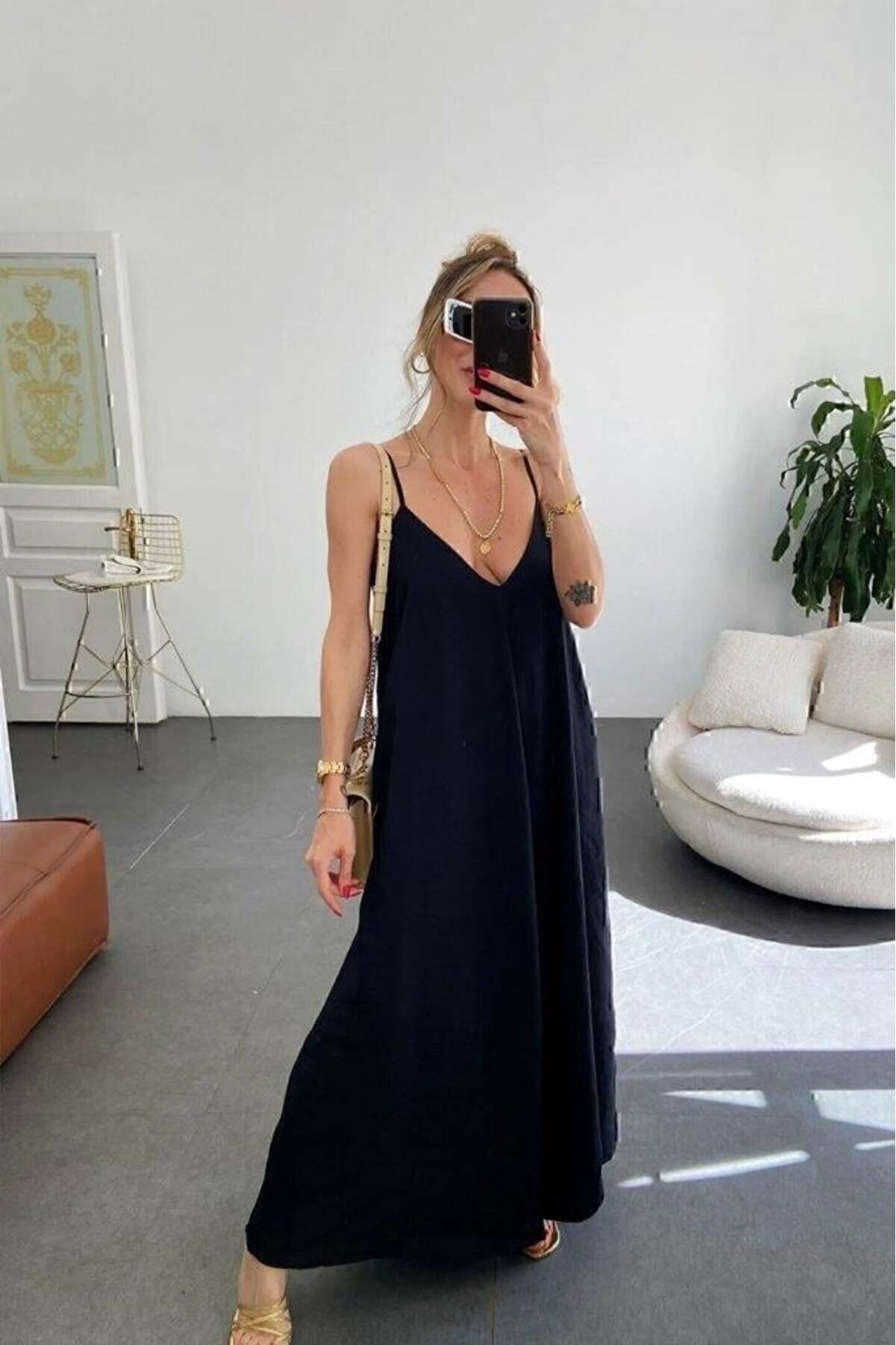 trend_ermege Kadın Ip Askılı V Yakalı Uzun Aerobin Elbise