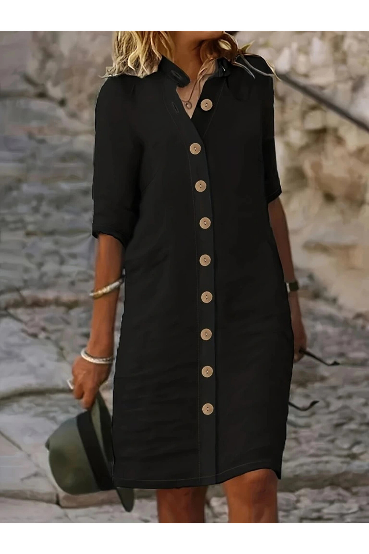 Kadın Kısa Kollu Hakim Yaka önden Düğmeli Kısa Müslim Elbise