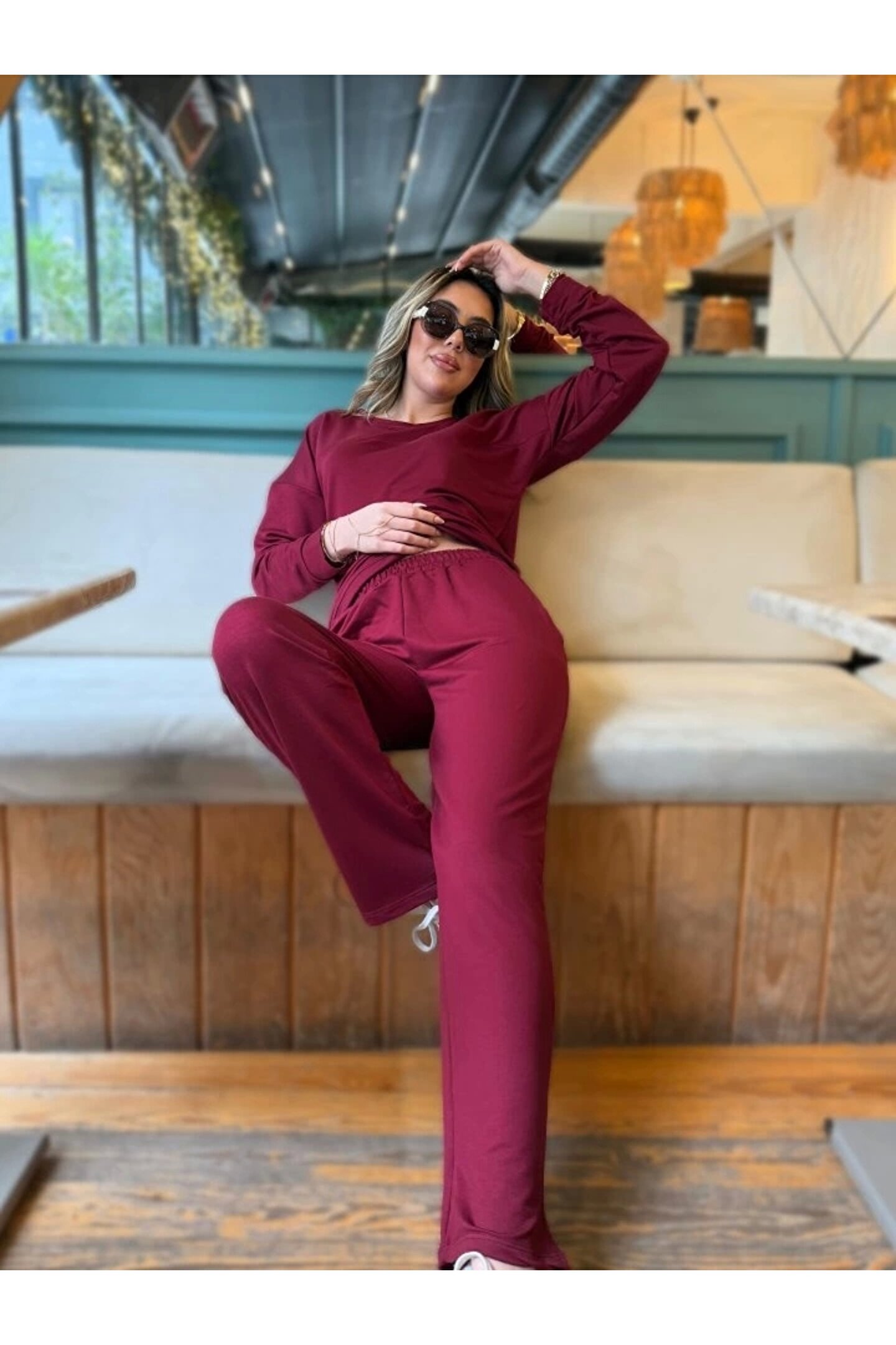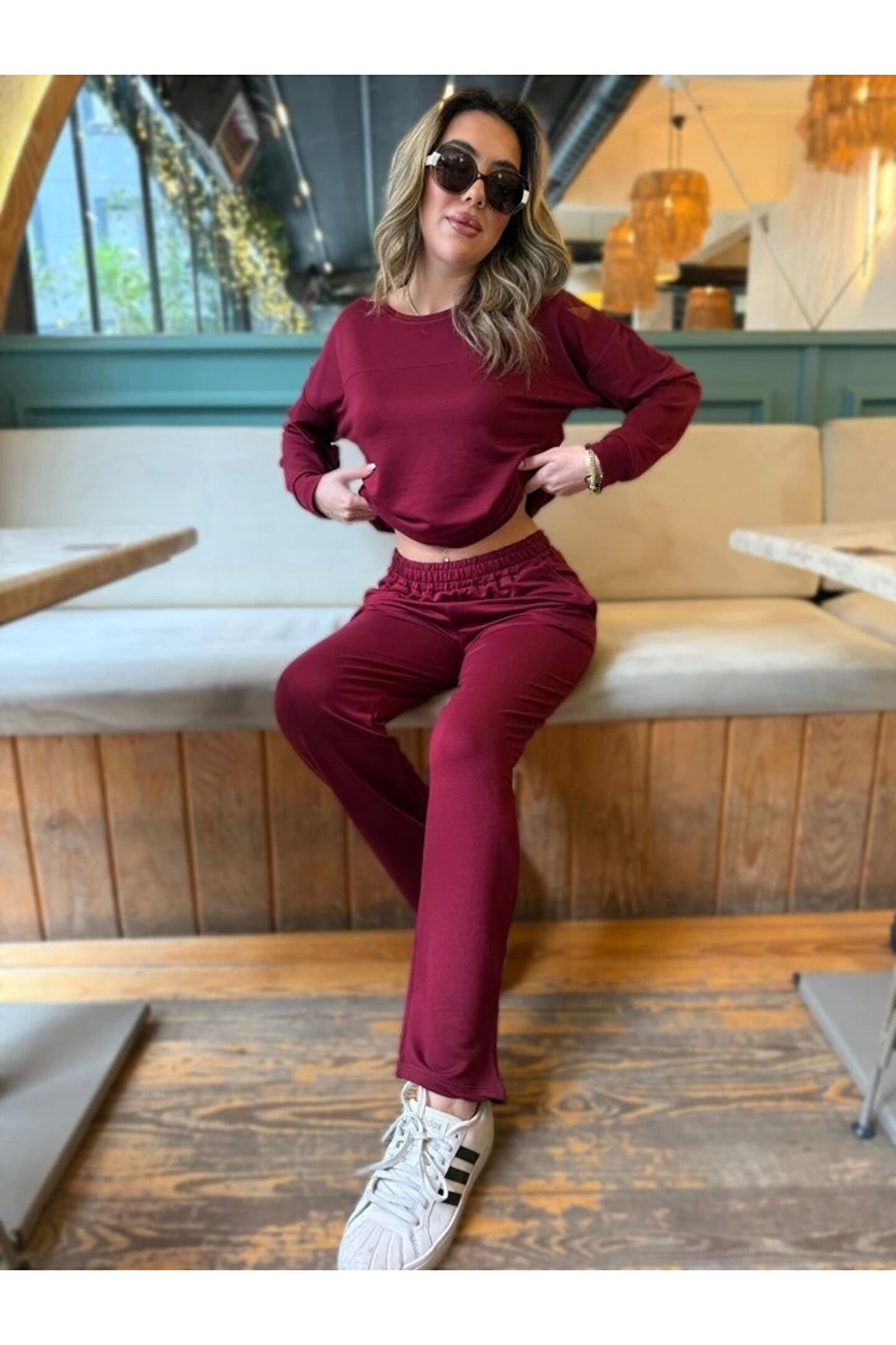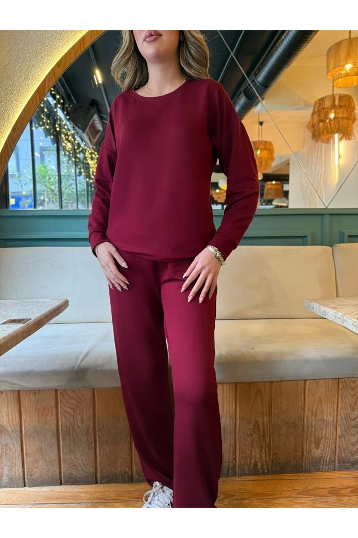 Kadın Uzun Kollu Bisiklet Yaka Viskon Iki Iplik Bluz Ve Pantolon Ikili Takım