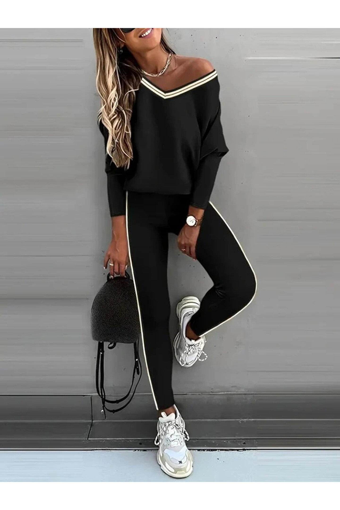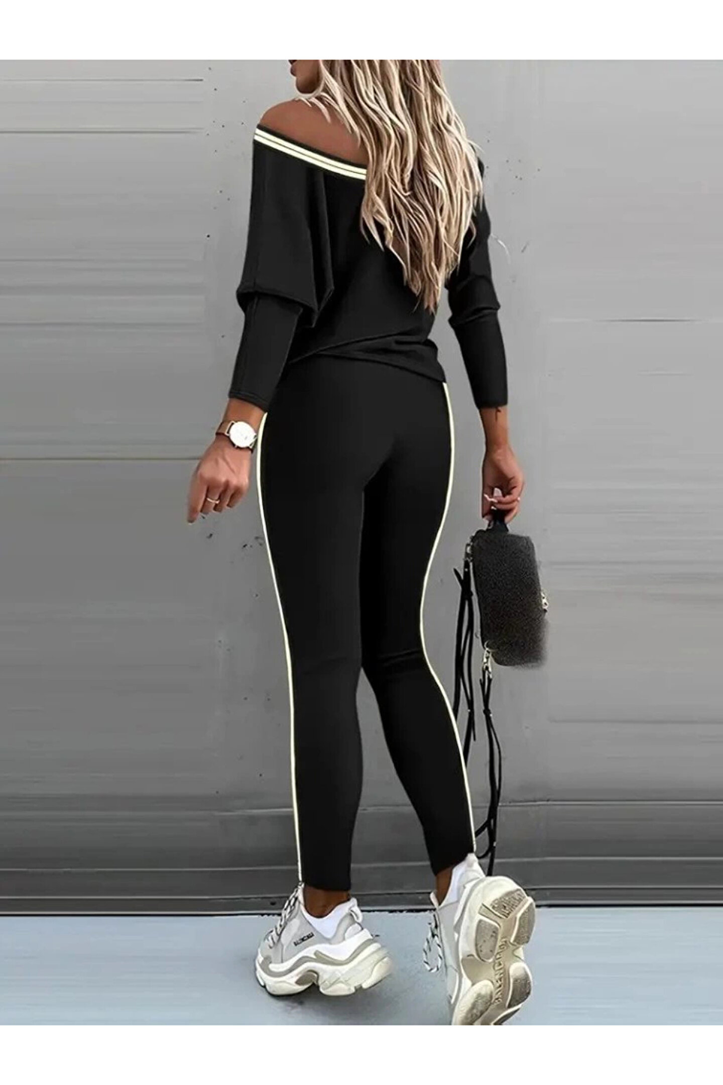 trend_ermege Kadın Uzun Kollu Tek Omuzu Açık Detaylı Viskon Iki Iplik Bluz Ve Pantolon Ikili Takım
