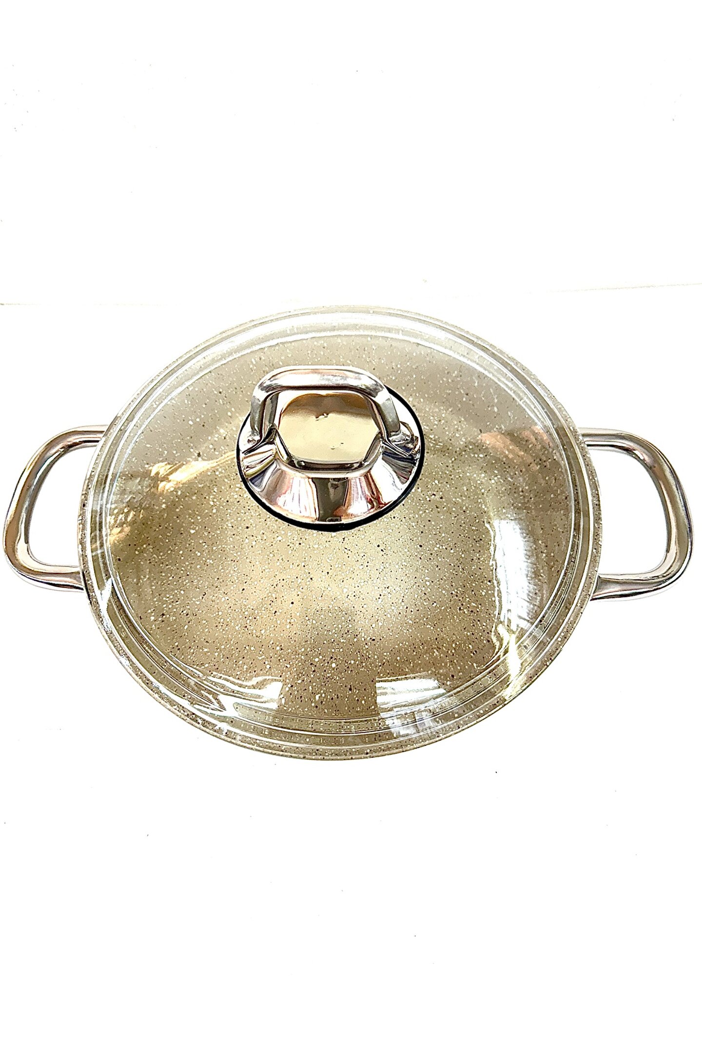 - 3,5 litre hacmiyle geniş kullanım alanı sunar, büyük porsiyonları kolayca hazırlamanızı sağlar.; - 26 cm çapındaki geniş yüzeyi sayesinde, yemeklerinizi rahatlıkla pişirebilir ve servis edebilirsiniz.; - Titanyum dış materyali ile dayanıklılık ve uzun ömürlülük sunar, mutfakta sık kullanıma uygun tasarlanmıştır.; - İç yüzeyinde bulunan granit kaplama sayesinde yiyecekleriniz eşit şekilde pişer ve yapışmazlık özelliği ile temizliği kolaylaştırır.; - Fırında kullanım imkanı sunarak, yemeklerinizi fırın sıcaklığında pişirme esnasında da güvenle kullanabilirsiniz.;