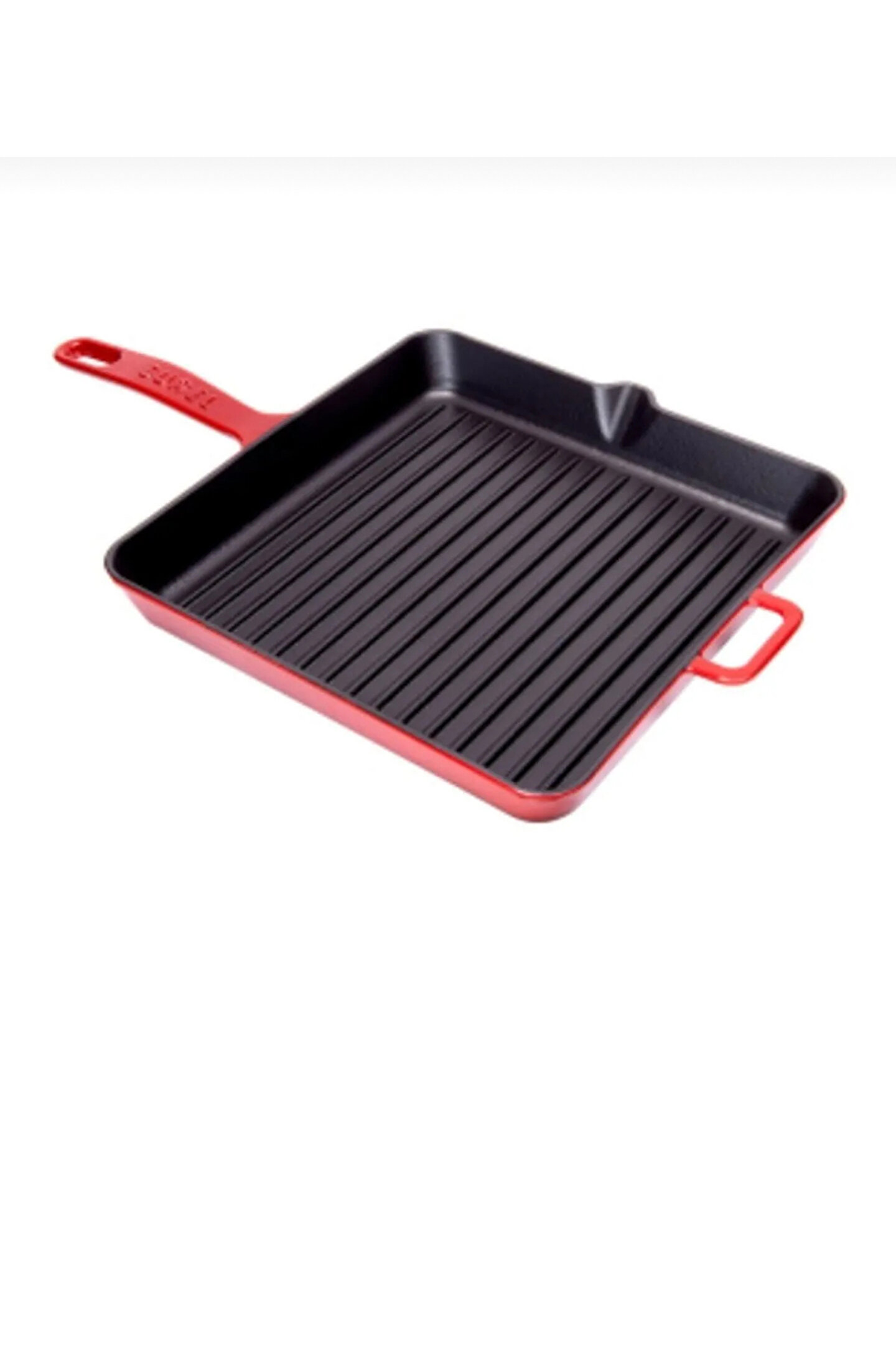 TRENDBULL Kare Demir Döküm Izgara Tava Kırmızı 30 Cm