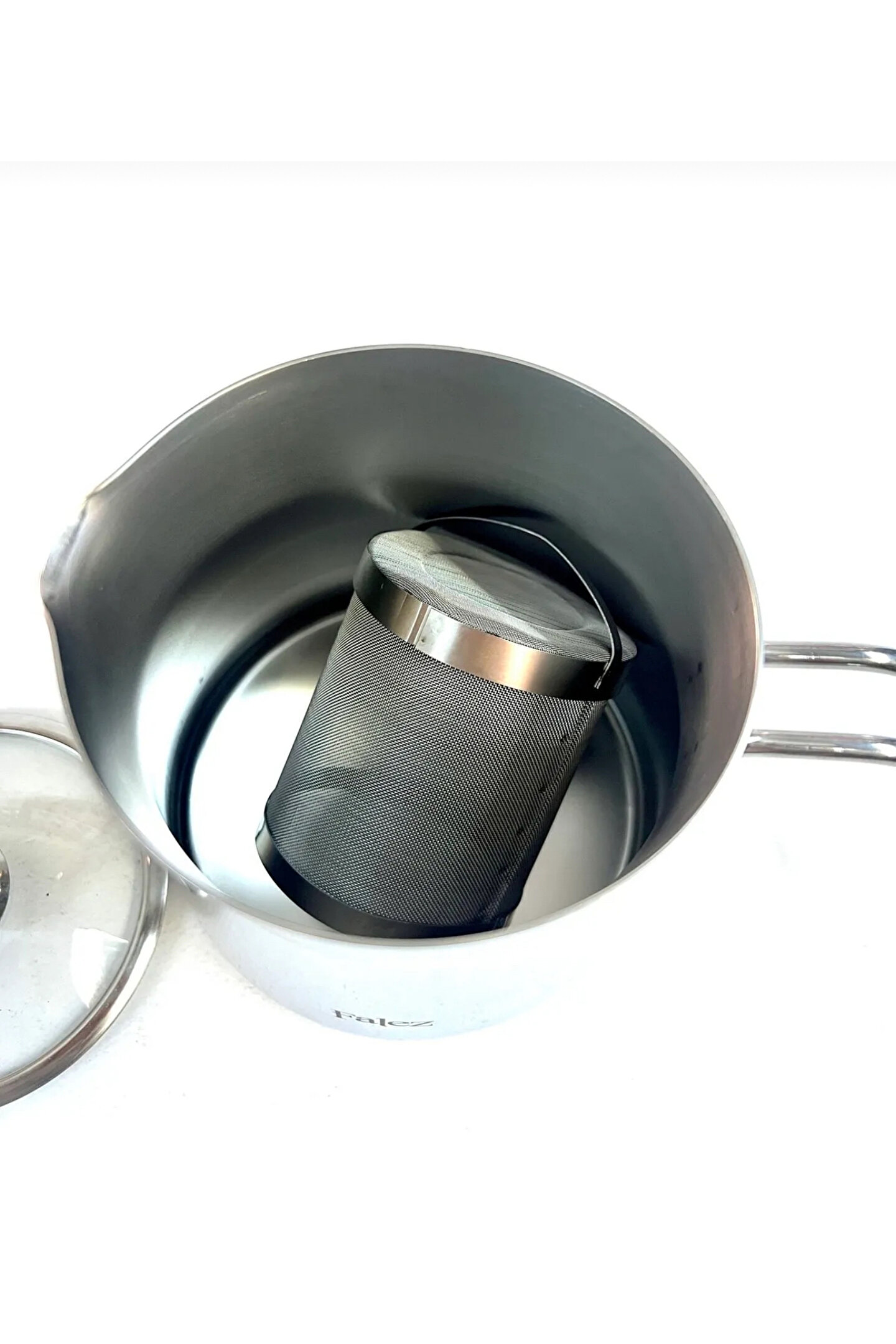 - Dayanıklı çelik malzemesi sayesinde uzun ömürlü kullanım sunar; - 800 ml kapasitesi ile ideal boyutta, tek seferde yeterli miktarda çay demlemenize olanak tanır; - Süzgeçli tasarımı, çay yapraklarının demlikte kalmasını önleyerek temiz ve net bir demleme deneyimi sağlar; - Kapaklı yapısı, çayınızın taze kalmasını ve aromasının korunmasını destekler;