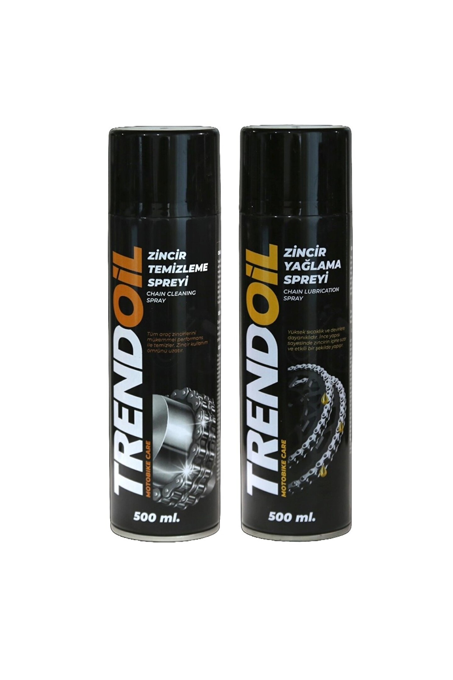 TRENDOİL ZİNCİR TEMİZLEME SPREYİ HER TÜRLÜ MOTOSİKLET ZİNCİRİNİ YOL ARAZİ VE MOTOCROSS ŞARTLARI FARKETMEKSİZİN TÜM ARAÇ ZİNCİRLERİNİ MÜKEMMEL PERFORMANS İLE TEMİZLER.HER TÜR YAĞ KUM TOZ GİBİ KABUK BAĞLAMIŞ TORTULARIN KOLAYCA ZİNCİRLERDEN AYRIŞMASINI SAĞLAR VE ZİNCİR YAĞLAMA AŞAMASINA MÜKEMMEL BİR GEÇİŞ İÇİN ZİNCİRLERİ EN TEMİZ HALE GETİRİR.KLOR İÇERMEYEN FORMULÜ İLE TÜM ZİNCİR ÇEŞİTLERİNE UYGULANABİLİR VE 0-RİNGLERE ZARAR VERMEZ.BU ÖZELLİĞİ SAYESİNDE ZİNCİR KULLANIM ÖMRÜNÜ UZATIR