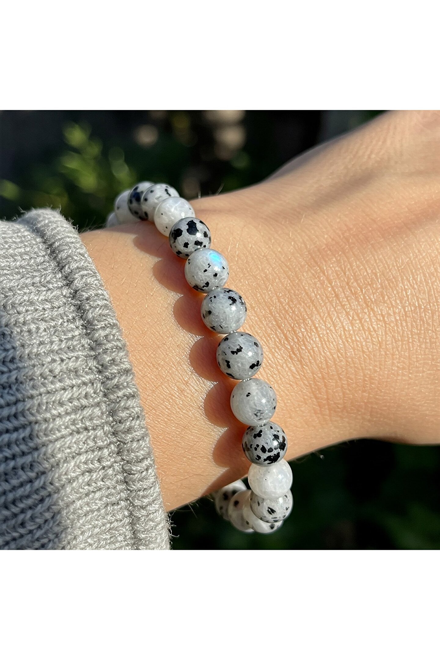 Doğanın dinginliğini ve ayın mistik enerjisini bileğinizde taşıyın! Bu zarif bileklik, özenle seçilmiş 6mm çapındaki doğal ay taşı tanelerinden oluşur.; Her bir taş, kendine özgü ışıltısı ve büyüleyici beyaz tonlarıyla dikkat çeker.; Ay taşının nazik ve huzurlu enerjisi, duygusal dengeyi desteklemeye ve içsel huzuru bulmaya yardımcı olabilir.; Öne Çıkan Özellikler: * Doğal Ay Taşı: Gerçek ay taşı tanelerinin eşsiz güzelliği.; * Zarif Boyut: 6mm çapındaki taşlar, bileğinize hoş ve narin bir görünüm sunar.; * Sadece Taşlardan Oluşan Tasarım: Sade ve şık, her tarza kolayca uyum sağlar.; * Huzur ve Denge: Ay taşının enerjisiyle gün boyu dinginliği hissedin.; * Anlamlı Hediye: Sevdiklerinize hem şık hem de özel anlamlar taşıyan bir hediye seçeneği.
