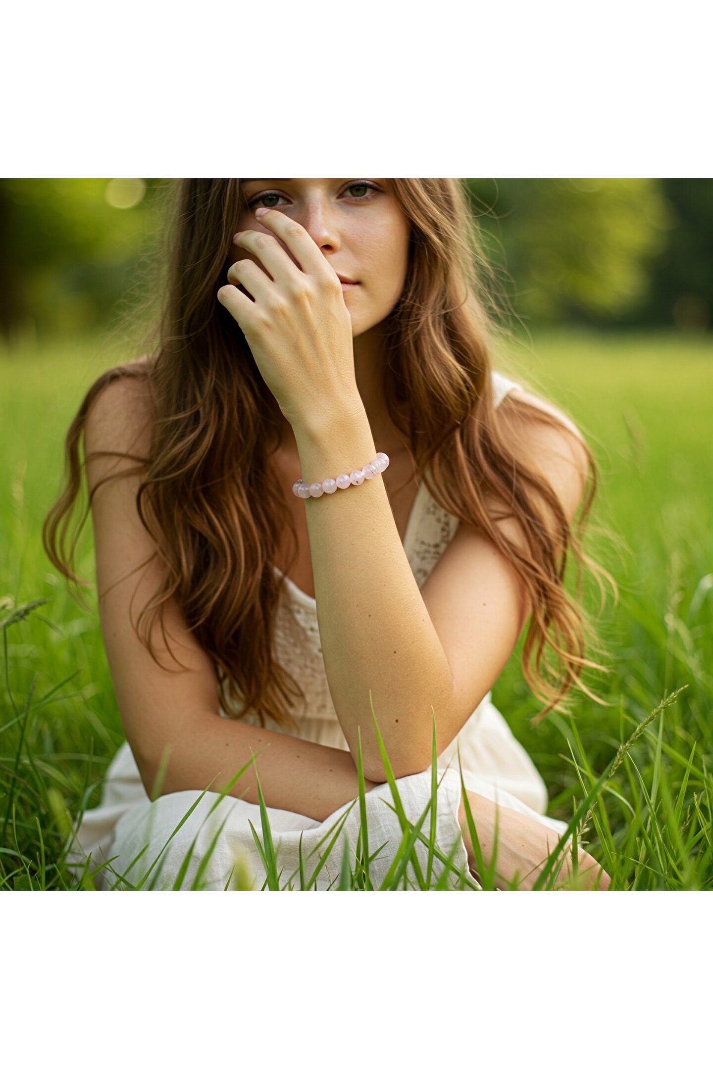 Doğanın şefkat dolu enerjisini bileğinizde taşıyın! Bu zarif 6mm pembe kuvars bileklik, sadece göz alıcı bir aksesuar olmakla kalmaz, aynı zamanda kalbinizi sevgi, huzur ve şefkat enerjisiyle doldurur.; Pembe kuvars, koşulsuz sevginin, huzurun ve duygusal iyileşmenin taşı olarak bilinir.; Bu narin bilekliğin her bir doğal taşı, yumuşak pembe tonlarıyla dinginlik yayar ve içsel huzurunuzu destekler.; 6mm boyutu, bileğinize zarif bir dokunuş katarken, taşların nazik enerjisini gün boyu üzerinizde taşımanızı sağlar.