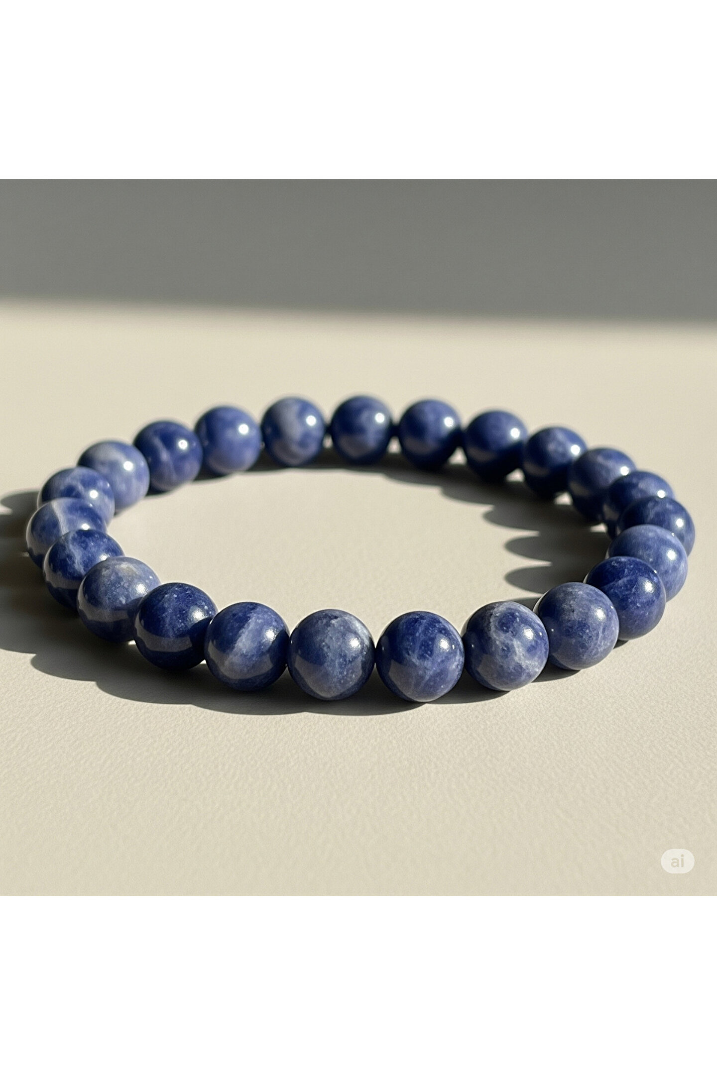 Sodalit Doğal Taş Bileklik (6mm) Zihnin berraklığını ve iç huzurunu arayanlar için özenle tasarlanmış bu şık sodalit doğal taş bileklik, sadece görünümüyle değil, taşıdığı anlamla da sizi etkileyecek.; 6mm boyutundaki doğal sodalit taşlarının derin lacivert tonları ve karakteristik beyaz damarları, her bileğe sofistike bir dokunuş katarken, doğanın eşsiz enerjisini de yanınızda taşımanızı sağlar