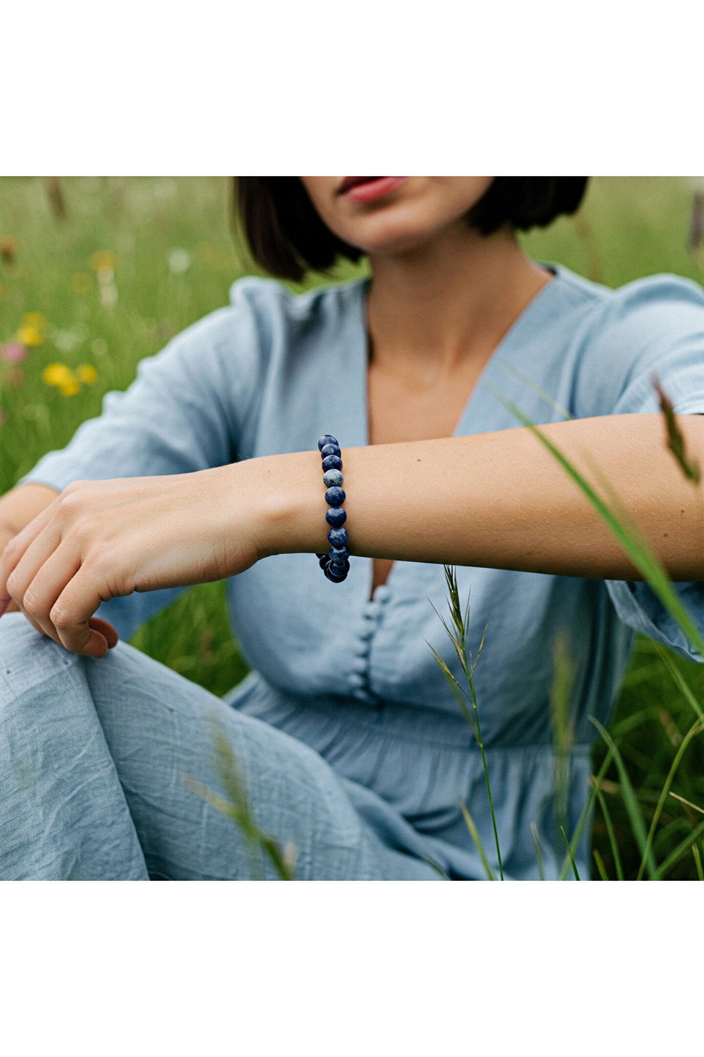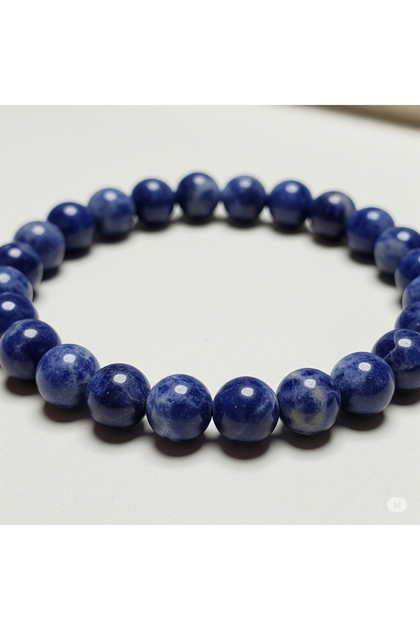 Sodalit Doğal Taş Bileklik (6mm) Zihnin berraklığını ve iç huzurunu arayanlar için özenle tasarlanmış bu şık sodalit doğal taş bileklik, sadece görünümüyle değil, taşıdığı anlamla da sizi etkileyecek.; 6mm boyutundaki doğal sodalit taşlarının derin lacivert tonları ve karakteristik beyaz damarları, her bileğe sofistike bir dokunuş katarken, doğanın eşsiz enerjisini de yanınızda taşımanızı sağlar