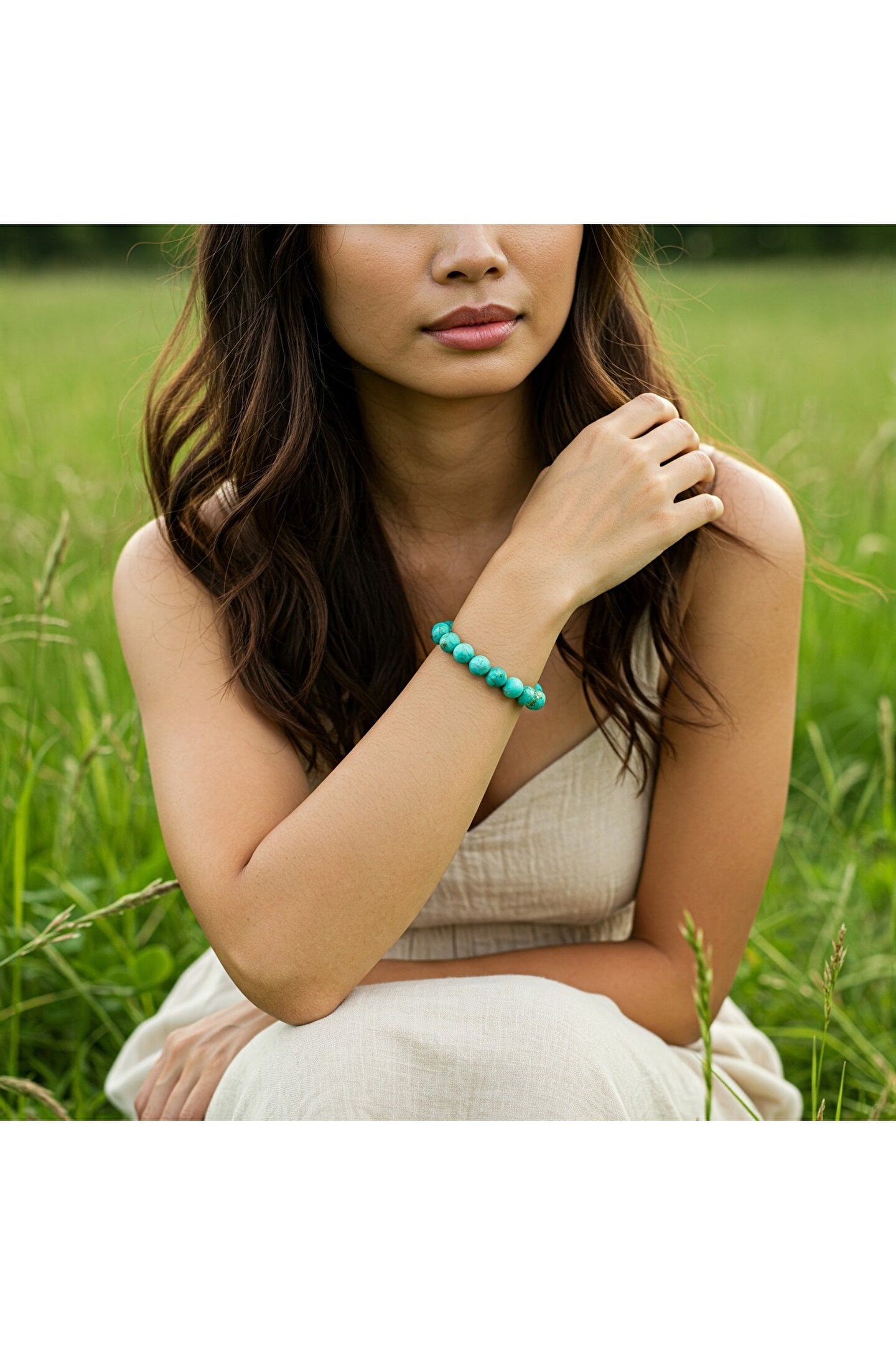 Doğanın huzurunu bileğinizde taşıyın.; Bu zarif turkuaz bileklik, canlı mavi-yeşil tonlarıyla her kombininize ferahlatıcı bir dokunuş katacak.; Günlük kullanım veya özel günler için mükemmel bir seçim