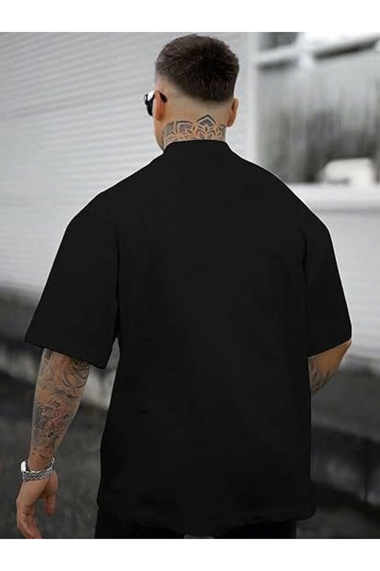 Erkek Bisiklet Yaka Kısa Kol Baskılı T-shirt - Siyah