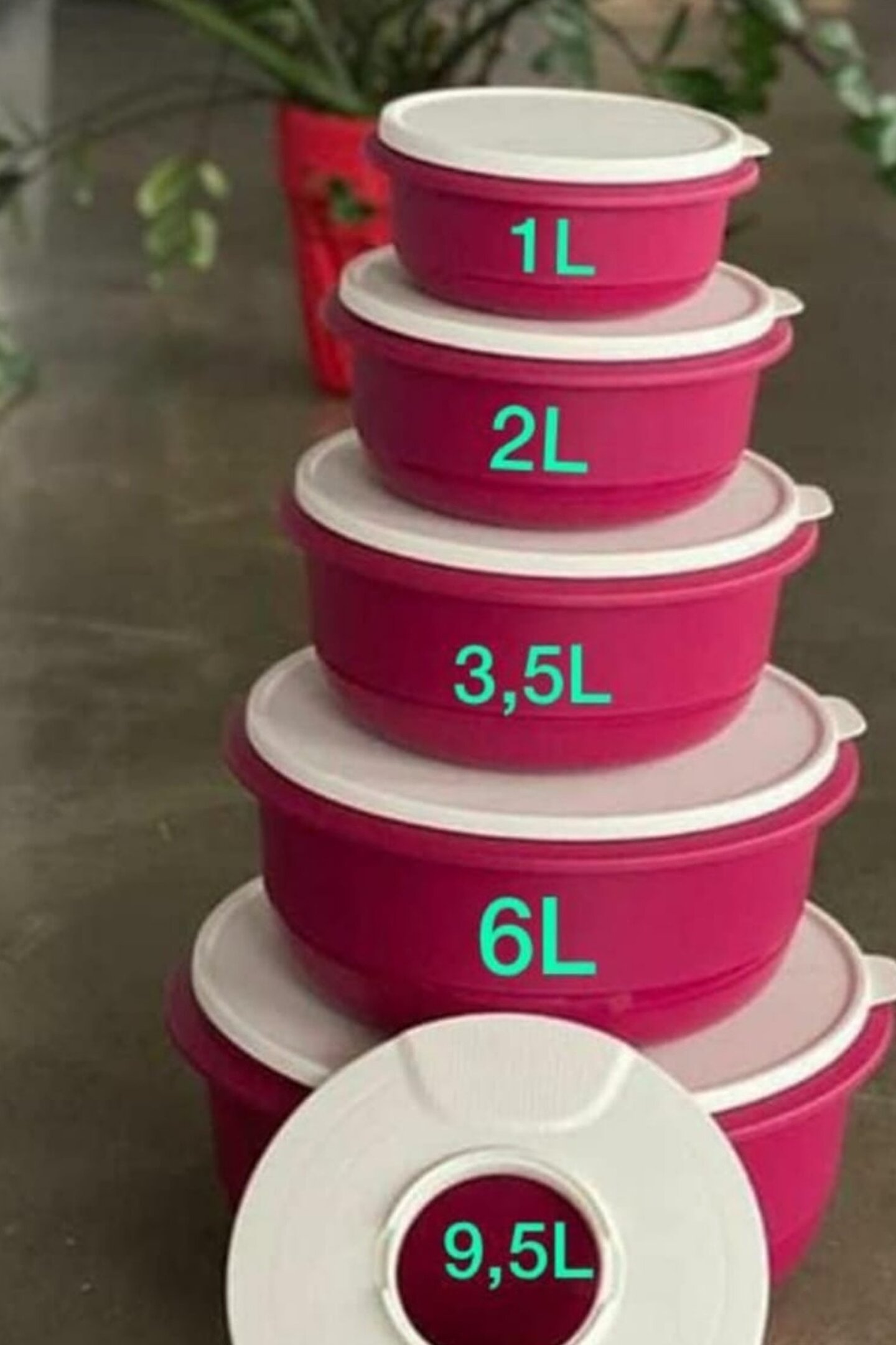 Tupperware Ürünüdür. ; Tupperware Miksim 5'li Set Fuşya Hazırlama, saklama ve taşıma amaçlı bir üründür. ; * geniş gövdesi ve tabanı, karıştırma esnasında devrilmesini önler. ; * leke tutmaması için özel bir iç yüzeyi vardır. ; * hava geçirmeyen büyük salata kasesi olarak kullanılabilir. ; * hamur, yoğurt mayalamak için eşsiz bir üründür . ; * bakliyatınız 1 saate hazır, pişirilmeye. ; Geceden ıslatmaya gerek yok . ; * sıçramayı önleyen kapak 1lt 6lt ve 3.5 lt uyumludur. ; 9.5 lt 6 lt 3.5 lt 2 lt 1 lt sıcratmaz kapakda hediyesidir.;