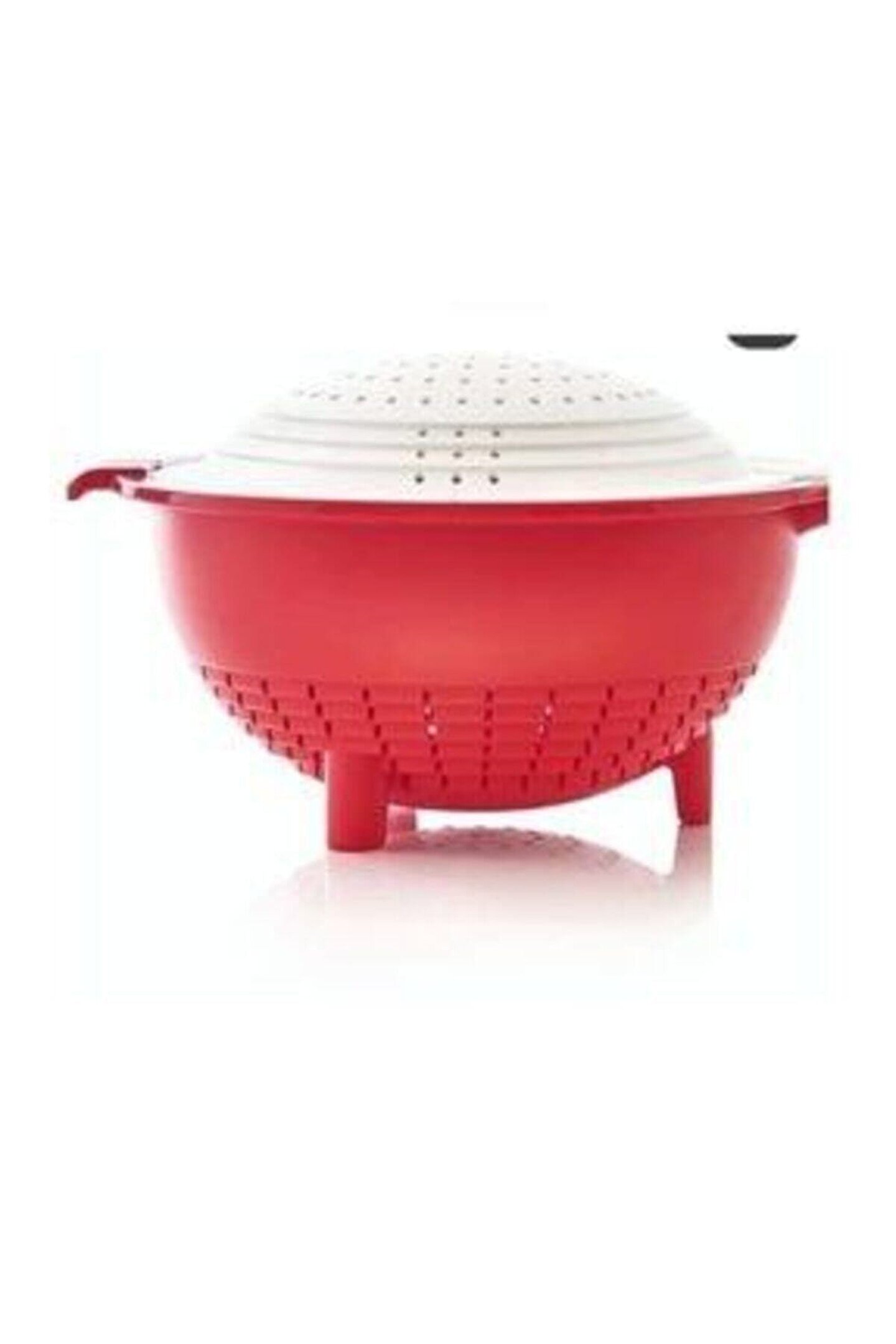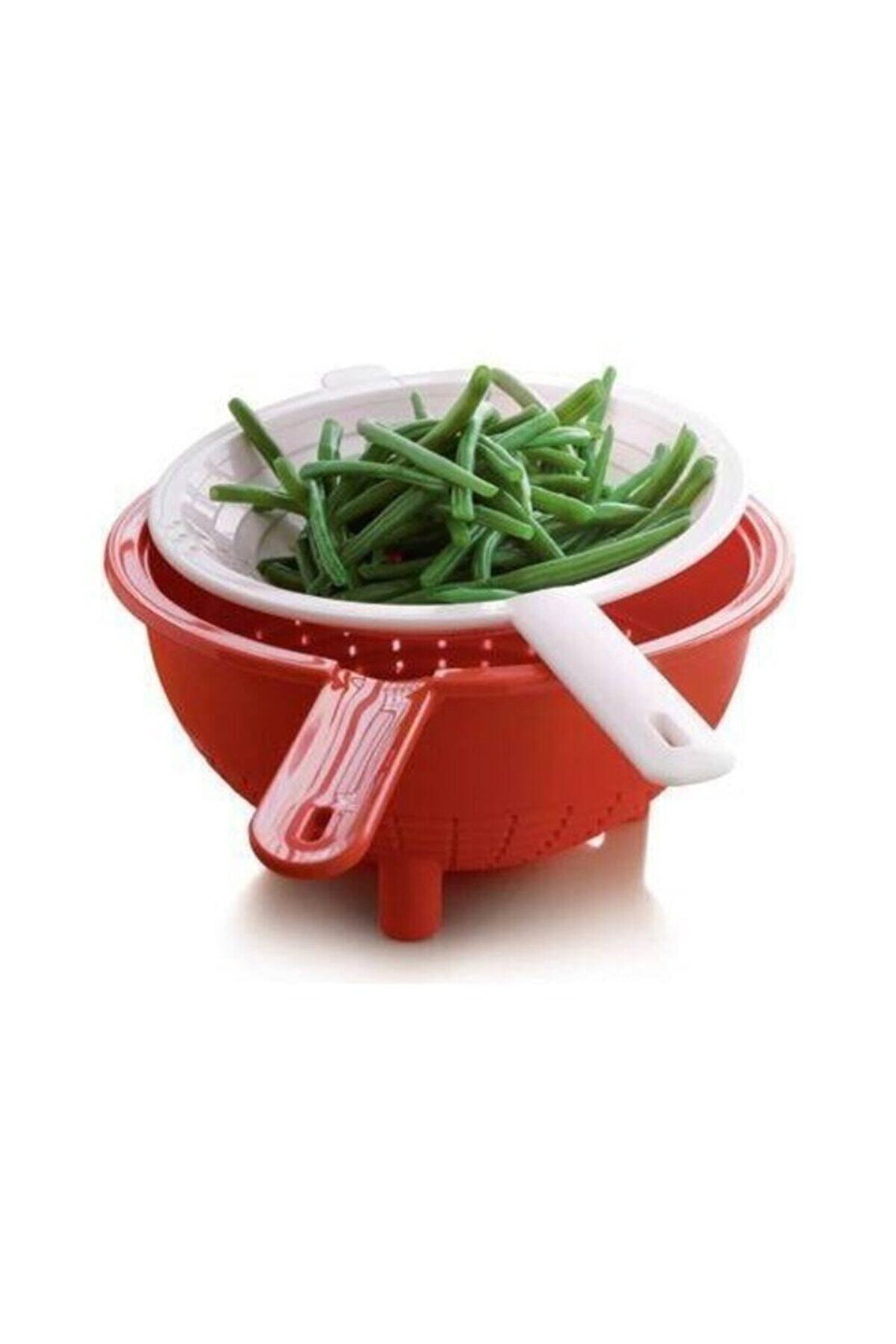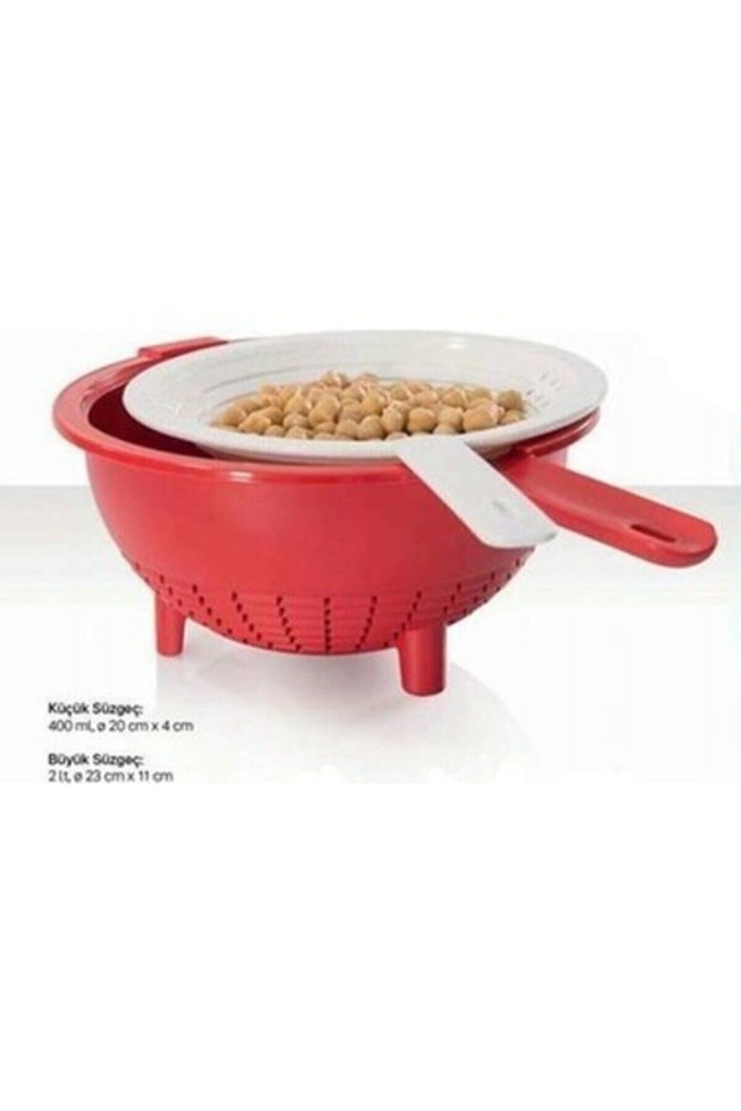 Ürün içeriği: Küçük süzgeç (400 ml, ø 20 cm x 4 cm) + büyük süzgeç(2 lt, ø 23 cm x 11 cm) Gıdalarınızın süzülmesi, sudan geçirilmesi ve buzunun çözdürülmesi için kullanılır. Düz süzgeç, büyük süzgeçin üstüne yerleştirilerek narin sebze ve meyvelerin zedelenmeden yıkanmasını sağlar. Tutacağın karşı ucunda bulunan yarım daire şeklindeki dil sayesinde süzgeci büyük boy kaplarda da kullanabilirsiniz Dış gövdenin ayakları bir çok tupperware ürününün üzerine oturtarak rahatlıkla kullanabilmenizi sağlar. Orijinal ürün! Yumuşak kapaklar polietilen maddesinden üretiliyor. Bu madde yapay kalp kapakçığı üretiminde de kullanılır. Gövdeler ve kapaklardan biraz daha serttir polipropilen maddesinden yapılır. Bu madde de buzdolapların iç gövdesinin ham maddesidir. Cam görünümlü kristalin serisinin ham maddesi polikarbonat’tır. Bu madde de miyop, hipermetrop gibi göz rahatsızlığı bulunan kişilerin taktığı lens’in ham maddesidir. Silikon kalıpların ham maddesi de bildiğimiz göğse, dudağa vs. Konulan silikon maddesiyle aynıdır.