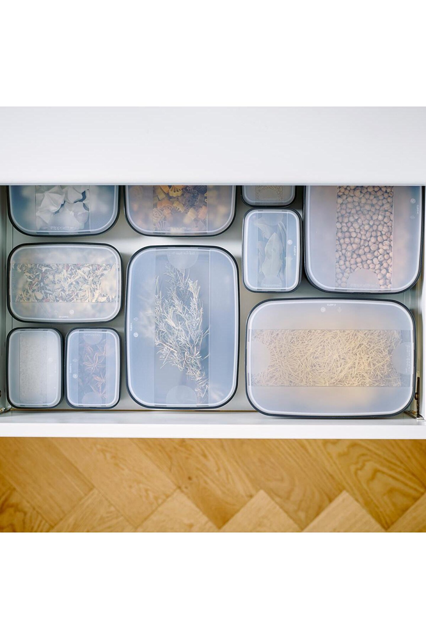 Düzen benim işim diyenlere Düzenli Kaplar! Evinize düzeni getiren, sade ve şıklığıyla kendine hayran bırakan modüler Düzenli Kaplar, çekmece içinde bile kolayca açılabilen, erişilebilirliği artıran ve zamandan tasarruf sağlayan şeffaf kapaklara sahiptir.; * Düzenli Kaplar çekmecedeki erişilebilirliği artırır ve eşyaların daha hızlı bulunmasına yardımcı olur.; * Düzenli Kaplarda saklanabilen uyumlu kaşıklar kullanarak, yiyecekleri çekmeceden çıkarmadan kaplardan servis etmek veya ölçmek çok hızlı ve kolaydır.; * Geniş kavisli köşelere sahip dikdörtgen şekli, standart çekmece ölçülerine uyar ve çekmecelere rahatlıkla sığar.; * Düzenli Kaplar kuru gıda muhafazası için tasarlanmış olup boyutları standart ambalajlı gıdaların kapasitelerine uygun olarak belirlenmiştir.; Saklama Alanları: - Mutfak - düzenli olarak kullanılan temel gıdaları saklayın.; - Yatak Odası ve Banyo - yatak odası ve banyo çekmecelerine sığacak boyutlarda - tuvalet malzemeleri, makyaj, saç bakımı, ilaçlar ve daha fazlası ile organizasyon olanakları sınırsızdır.; - Çalışma odası, hobi odası - dikiş, hobi ve oyun için her türlü şeyi saklayın.; Hacim: 1.6 Litre - 14.5x10.1x17.8