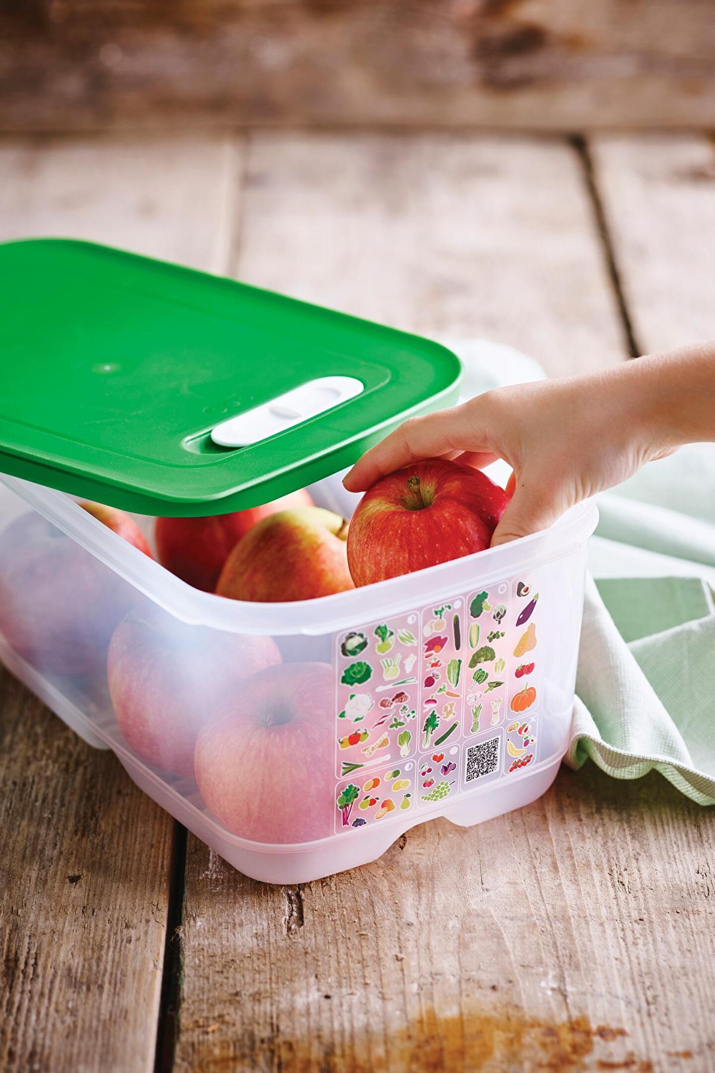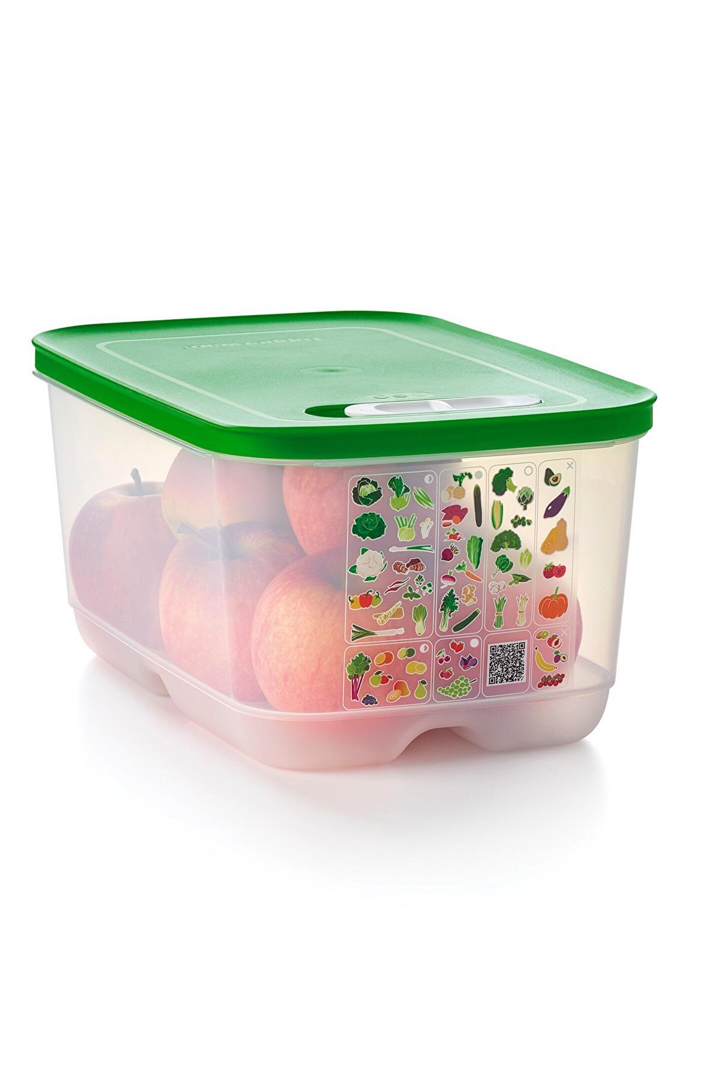 Ürünlerinizi daha uzun süre taze tutun! Meyve ve sebzelerin depolanması, bir dizi akıllı kap geliştirmek için Florida Üniversitesi ve Tupperware tarafından en iyi gıda bilimcileri tarafından kapsamlı bir şekilde araştırıldı.; Tupperware AKO (Atmosfer Kontrollü Ortam) sistemi, meyve ve sebzeleri daha uzun süre taze tutmak için en uygun ortamı yaratır.; Sera Serisi Kaplar, içeri giren oksijen akışını ve dışarı çıkan karbondioksiti dengeleyerek konteyner içindeki atmosferi düzenlemeye yardımcı olan özel bir üç yollu havalandırma sistemine sahiptir.; Kapağın üstünde yer alan kaydırıcı mekanizma 3 farklı pozisyonda kullanılabilir: 1- Yarım Açık: Kaydırıcı mekanizma, piktogramdaki yarım daire ile hizalandığında, contadaki küçük açıklık hafif havalandırma için açılır.; 2- Kapalı: Kaydırıcı mekanizma, piktogramın ortasındaki tamamen oyulmuş daire ile hizalandığında, contadaki her iki açıklık da kapatılır.; 3- Tam Açık: Kaydırıcı mekanizma, piktogram üzerindeki içi boş, parlak daire ile hizalandığında, contadaki büyük açıklık tam havalandırma için açılır.; Köşedeki tırnak sayesinde kapağın açılması kolaydır.; Tabanın altındaki yerleşik ızgara, içindekileri nemden uzak tutar ve yiyeceklerin etrafında hava sirkülasyonu sağlar.; Kullanılmadığı zaman, farklı boyutlar arasında bile kompakt depolama için yuvalanabilirler.; 4.4 L kapasiteli Sera Serisi Yüksek Gövdeli Kap, aşağıdaki gibi meyve ve sebzeleri saklayabilir: Elma, enginar, pancar, dolmalık biber, brokoli, havuç, karnabahar, kereviz, turunçgiller, hindiba, rezene, marul, kırmızı biber, armut, bezelye, biber, ıspanak, tatlı patates, şalgam, kabak…28.4 x 18.8 x 13.5