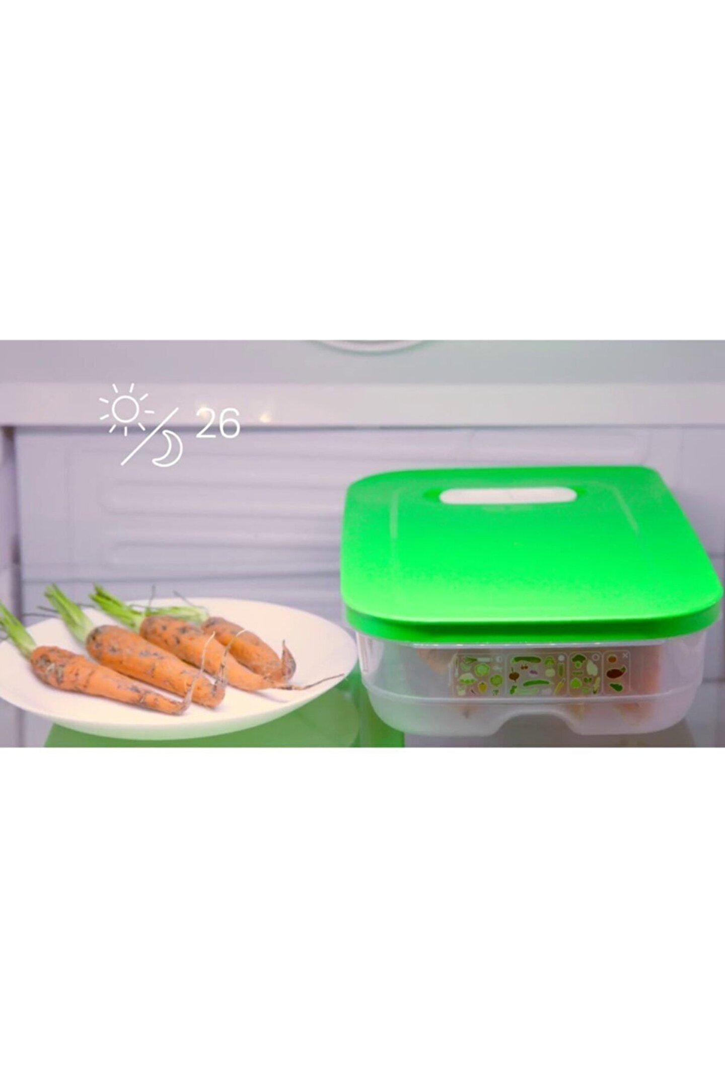 T50 - Sera Serisi Sebze Meyve Saklama Kabı 1.8 lt Alçak Gövde x 3 ADET Mutfaklarınızda sera etkisi Özellikler: Sebze ve meyvelerinizi buzdolabında saklarken ilk günkü tazelikleri ile korumanız için tasarlanmıştır.; Kapaktaki havalandırma sistemi kabın içerisindeki oksijen ve karbondioksit oranını dengeler ve ideal saklama ortamı yaratır.; Gövde üzerinde bulunan gıda işaretleri hangi gıda tipi için hangi havalandırma sistemini seçmeniz gerektiğini gösterir.; Kapağın üzerindeki hava kontrol sistemini kaydırarak ideal ortamı yaratabilirsiniz.; Geliştirilmiş gövde yapısı ızgara özelliği taşıyarak gıdanın oluşturduğu su ile teması engeller.; Sera Serisi'nin modüler yapısı buzdolabında yerden tasarruf etmenizi sağlar.;