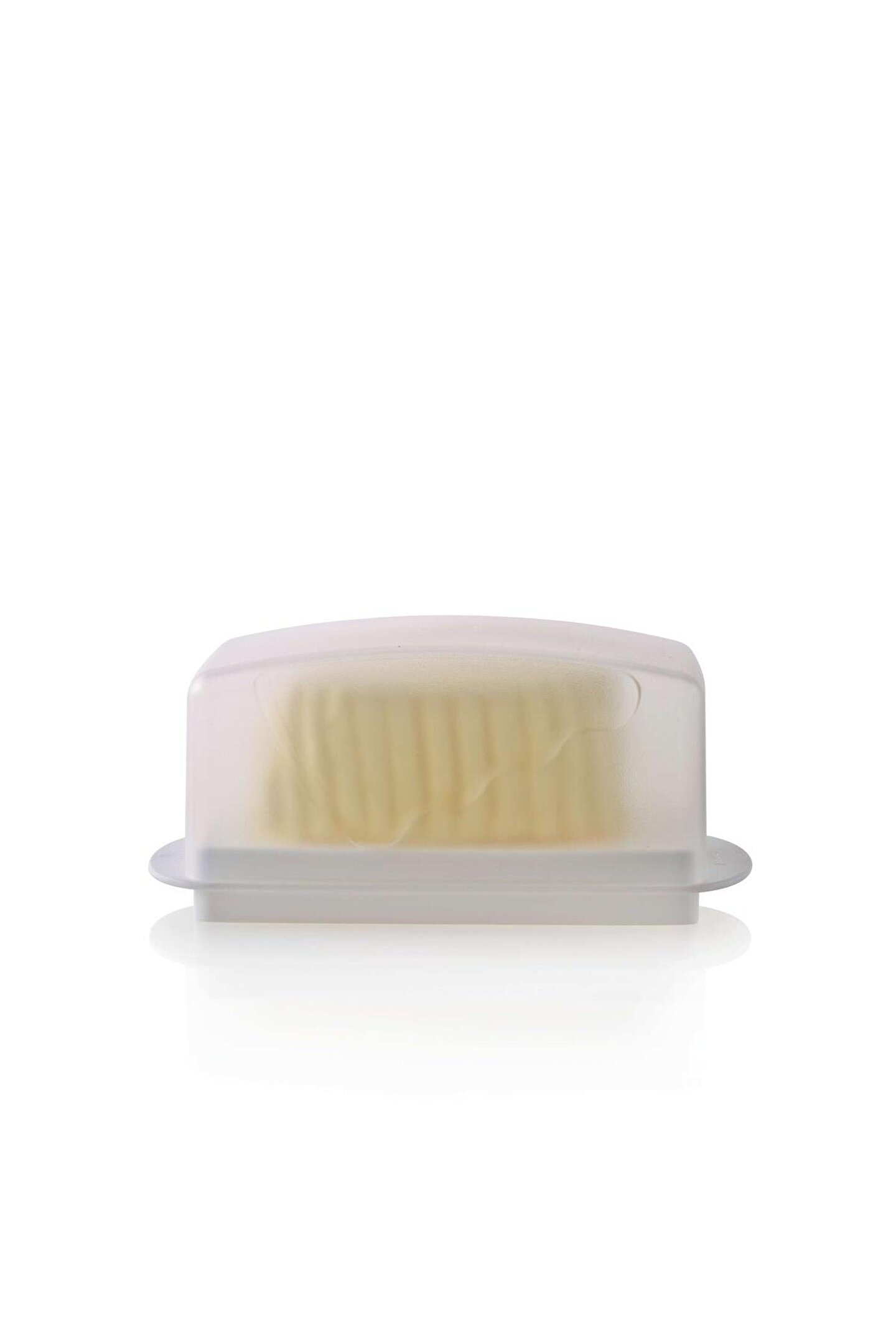 Tereyağı tabağı - tereyağını taze tutmak ve zarif bir şekilde servis etmek için.; Avantajları Yağ kutusu bir taban ve bir kapaktan oluşur.; Taban çift taraflıdır - bir tarafı düz, diğer tarafı büyük bir parça tereyağı saklamanıza olanak tanıyan bir girintiye sahiptir.; Tabanın her iki yanında bulunan küçük kulplar Yağ Kutusunun taşınmasını kolaylaştırır.; Taban servis için kullanılabilir.; Kapak, Yağ Kutusunun içindekileri yabancı kokulardan güvenilir bir şekilde korur ve kapaktaki dalgalı çıkıntılar sayesinde tek elle açılması uygundur.; Yağ buzdolabı kapısında saklanabilir.; Masdish'te ayrıca krem peynir ve ezme saklayıp servis edebilirsiniz.17,6 x 9,5 x 7,9 см