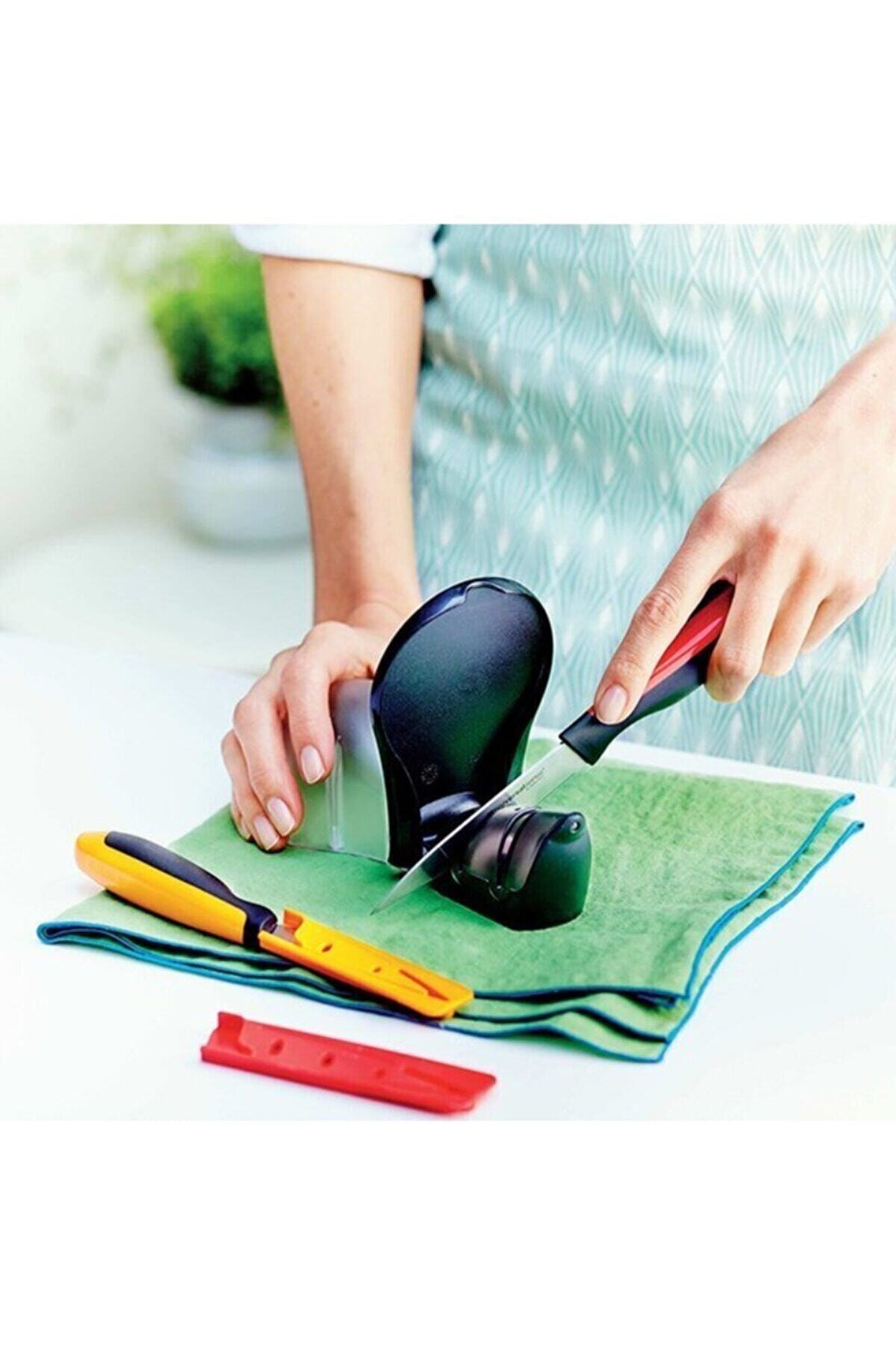 TUPPERWARE U-Serisi Bileyici Hem güvenli, hem ergonomik! Özellikler: Bıçaklarınıza zarar vermeden kolayca keskinleştirebilirsiniz.; Elinizi kesmenizi önleyen özel bir koruyucu bölmesi vardır.; Kendi içerisine katlanabilen özel yapısı sayesinde çekmecede yer kaplamadan kolayca saklanır.;