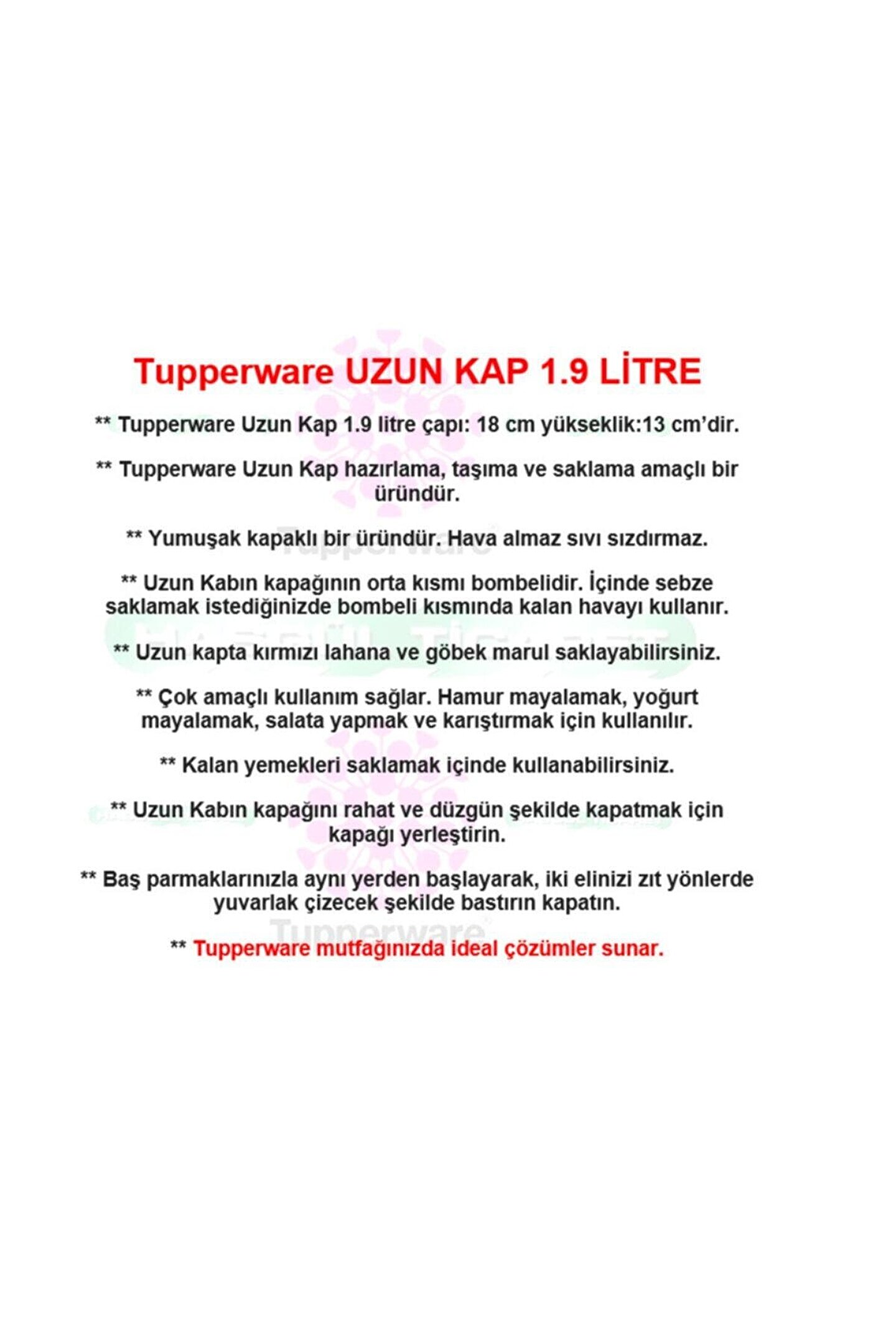 Tupperware Uzun Kap 1.9 Lt Mor Hazırlama Saklama Kabı Hsgl