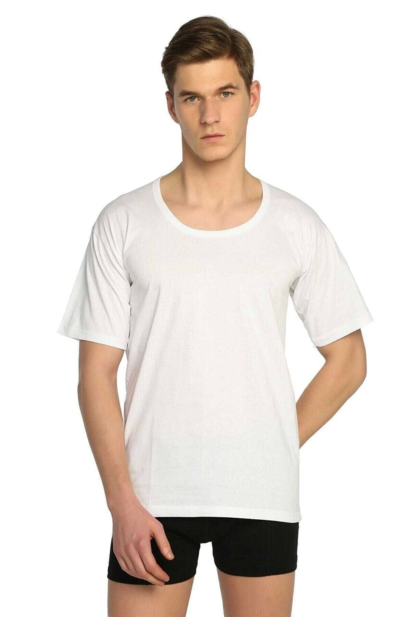 Erkek Penye 6'lı Paket Bisiklet (açık) Yaka Yarım Kollu Fanila (beyaz) %100 Pamuklu