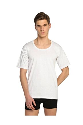 Tutku Erkek Penye 6lı Paket Bisiklet (açık) Yaka Yarım Kollu Fanila (beyaz) %100 Pamuklu