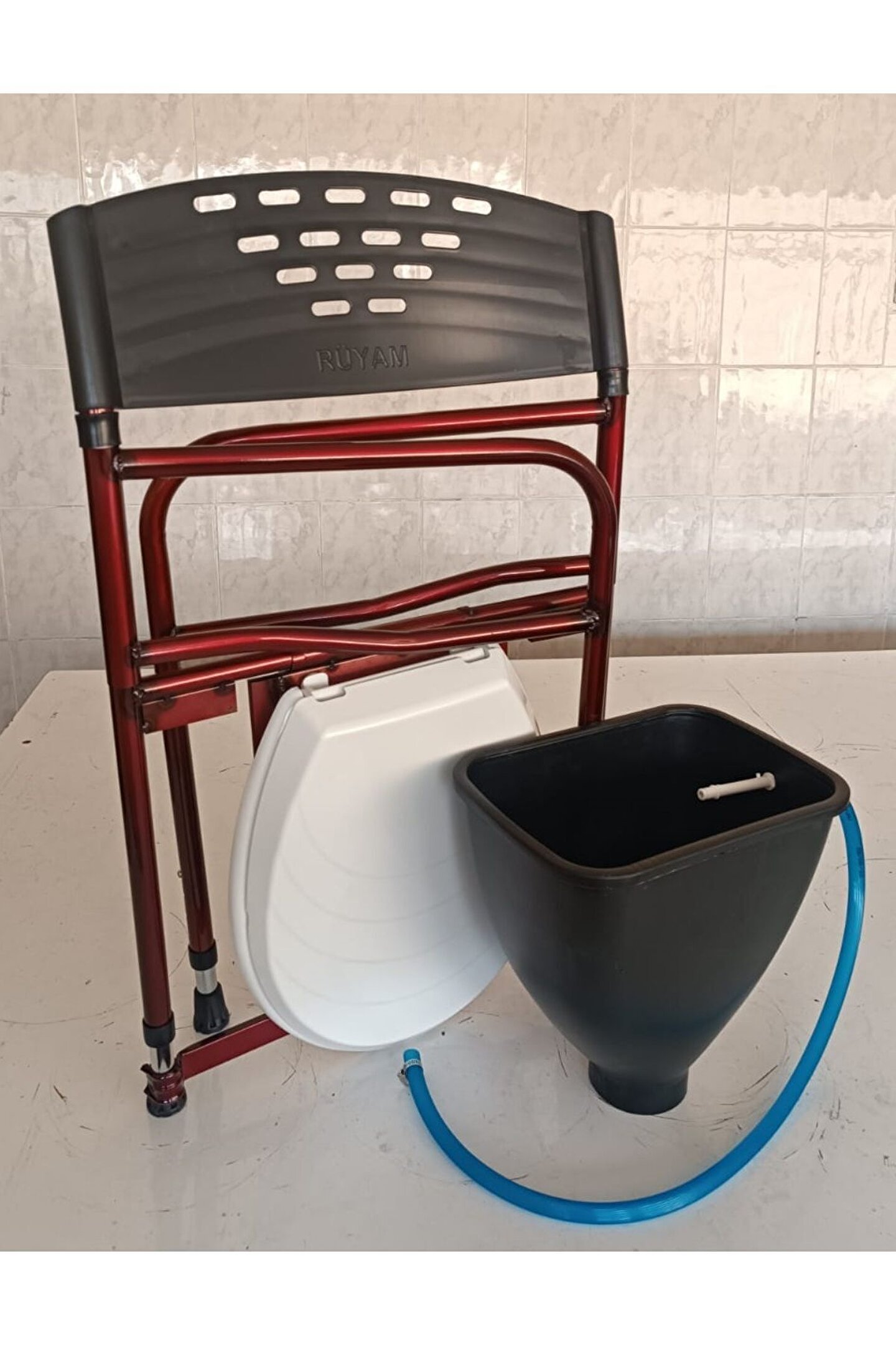 Taharet yapılması için özel aparatı vardır Evdeki Çeşmeye Rahatca Monte Edilebilir ; WC Yükseltici Seyyar Wc Direk Seyyar WC Hasta Tuvaleti Portatif Tuvalet Medikal wc YENİ ÜRÜN..OTURAK YERİ ALATURKA TUVALETE DENK GETİREREK İHTİYAÇ GİDERİLİR VE SIÇRATMA GİBİ SORUNLAR YAŞANMAZ ..AYRICA ÇIKARILIP TEMİZLENEBİLİR.ARACA SIĞAR İSTENİLEN YERE GÖTÜRÜLEBİLİR.. Sağlam metalden üretilmiş olup, yaşlı ve yürüme güçlüğü çeken hastalarca kullanılır. Katlanılabilir özelliğe sahiptir. Pratik bir kullanımı vardır. Metal ayaklarla yükseklik ayarı yapılacak şekilde tasarlanmıştır... Açıklama Diğer modellerden daha rahat ve daha stabildir. Katlanma özelliği sayesinde ev içerisinde az yer kaplar ve taşıma kolaylığı sağlar. - Tamamen metal borudan imal edilmiştir. - Dengeli ve sağlam bir oturaktır. - Oturak kısmı plastik olup rahat bir kullanım sağlar. - Alt kısmındaki plastik sürgü istenildiği zaman çıkarılıp temizlenebilir. - Eklemli bağlantıları sayesinde katlanır özelliğine sahiptir yer kaplamaz. - Yüksekliği ayalanabilir. - Tamamen elektrostatik toz boyadır ; BU ÜRÜNÜN ALTINDAKİ KOVASININ ALTI AÇIKTIR SADECE TUVALET ÜZERİNDE VEYA BAĞDA BAHÇEDE KULLANILIR ODADA KULLANILMAZ AYRICA TUVALET ÜRÜNLERİNDE KESİNLİKLE İADESİ YOKTUR...KULLANMADIM SEVMEDİM EVE UYMADI GİBİ BAHANELER KABUL EDİLEMEZ İADESİ MÜMKÜN DEĞİLDİR