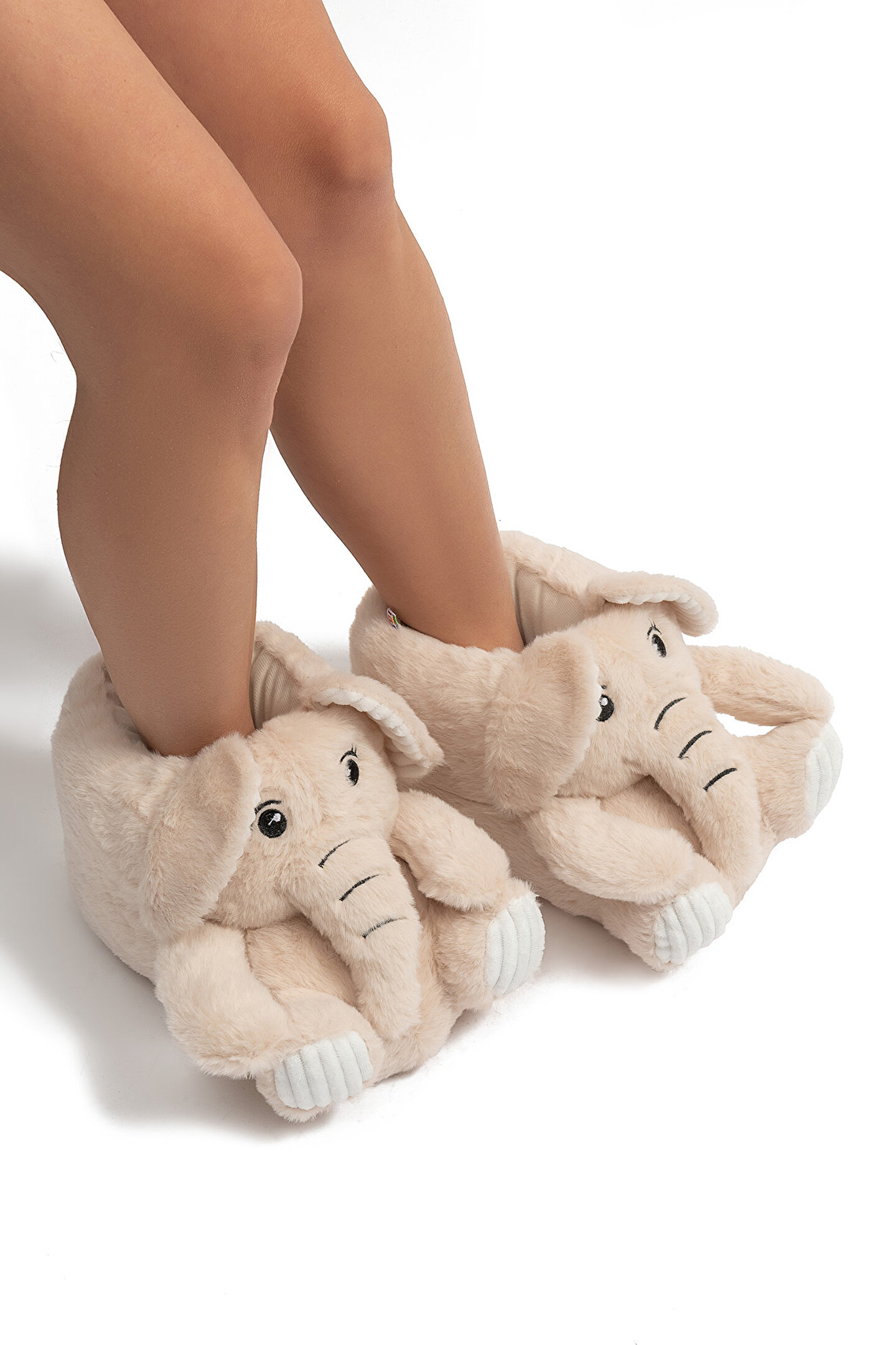 Twigy Elfi Kadın Hayvanlı Panduf Bej 3641