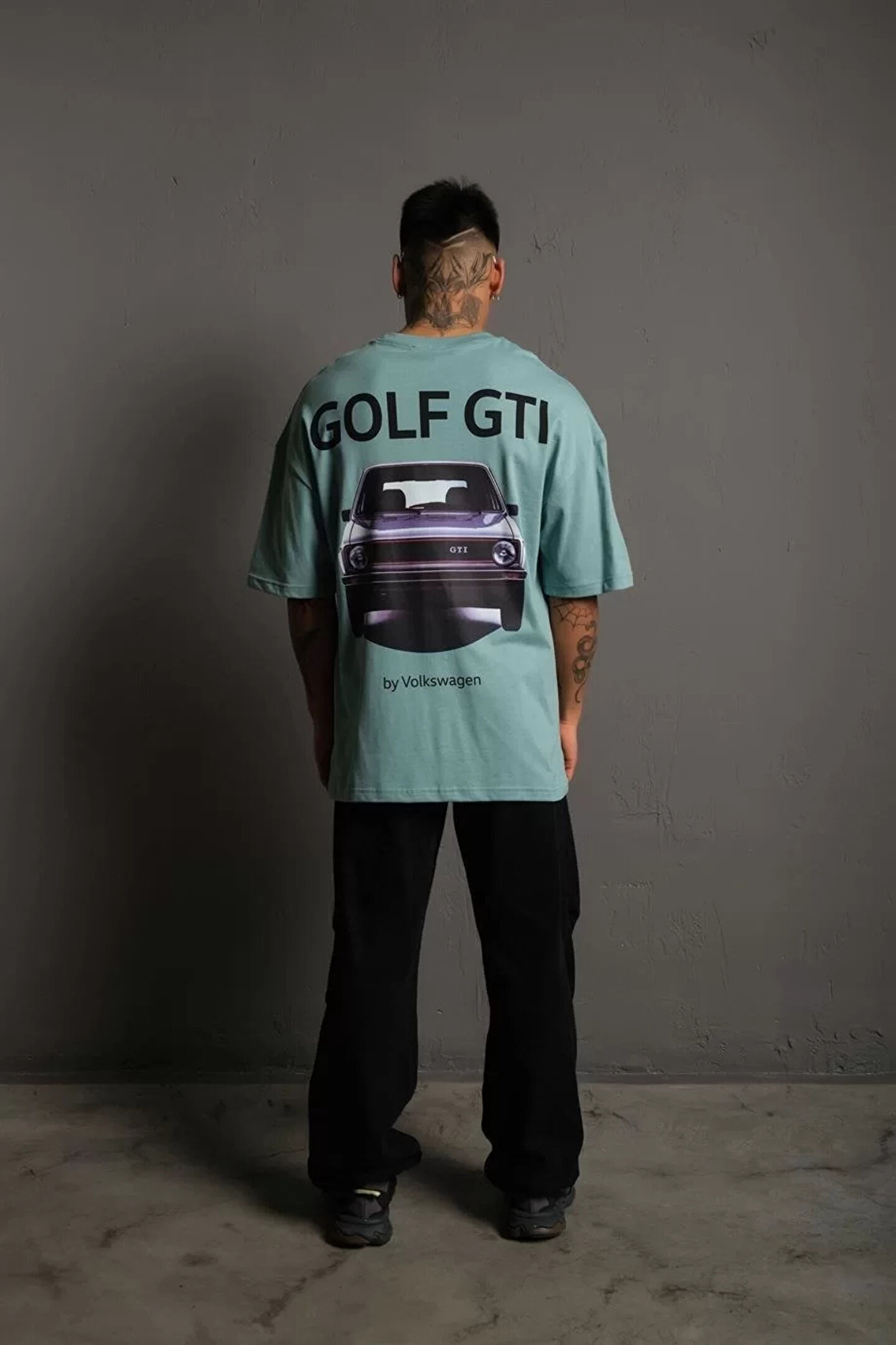 Erkek Sırt Golf Gtı Baskılı Oversize T-shirt - Mint Yeşili