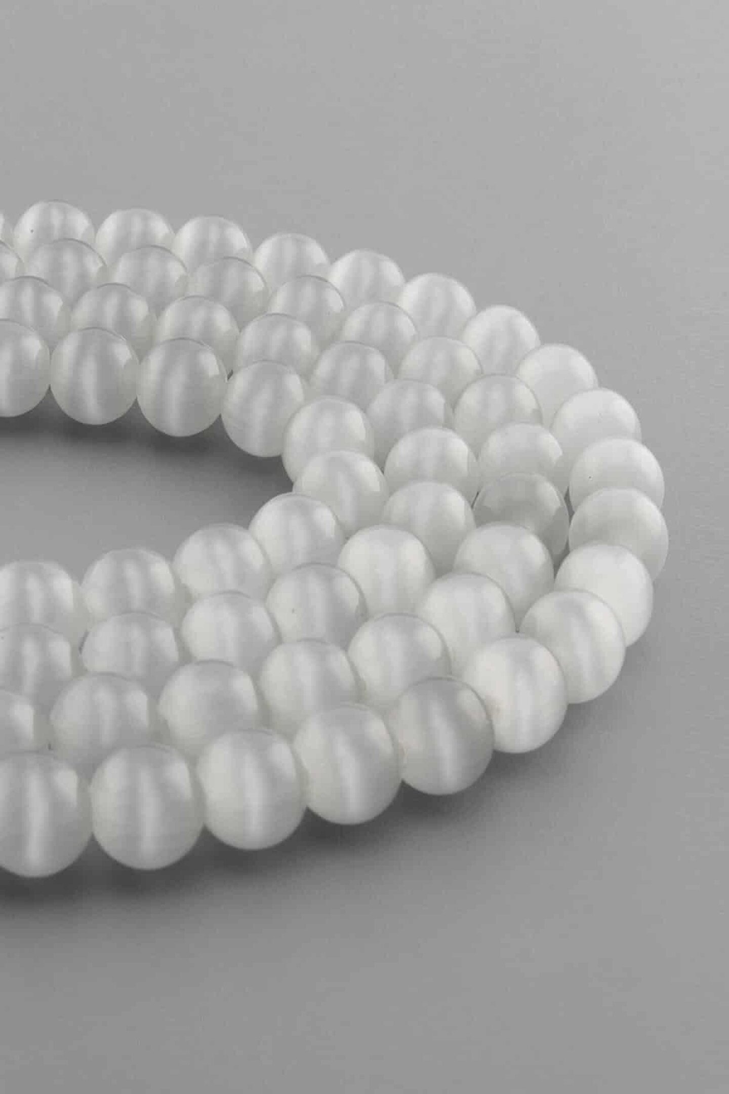Uçar Doğaltaş Kedi Gözü Doğal Taş Parlak Gri Küre Kesim 10mm Dizi [AB]