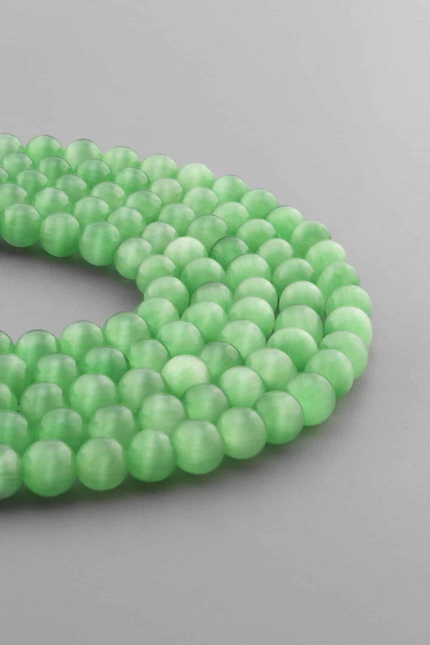 Uçar Doğaltaş Kedi Gözü Doğal Taş Parlak Yeşil Küre Kesim 8mm Dizi [b ]